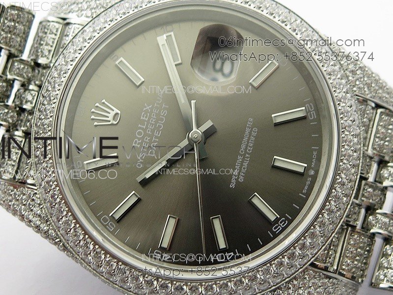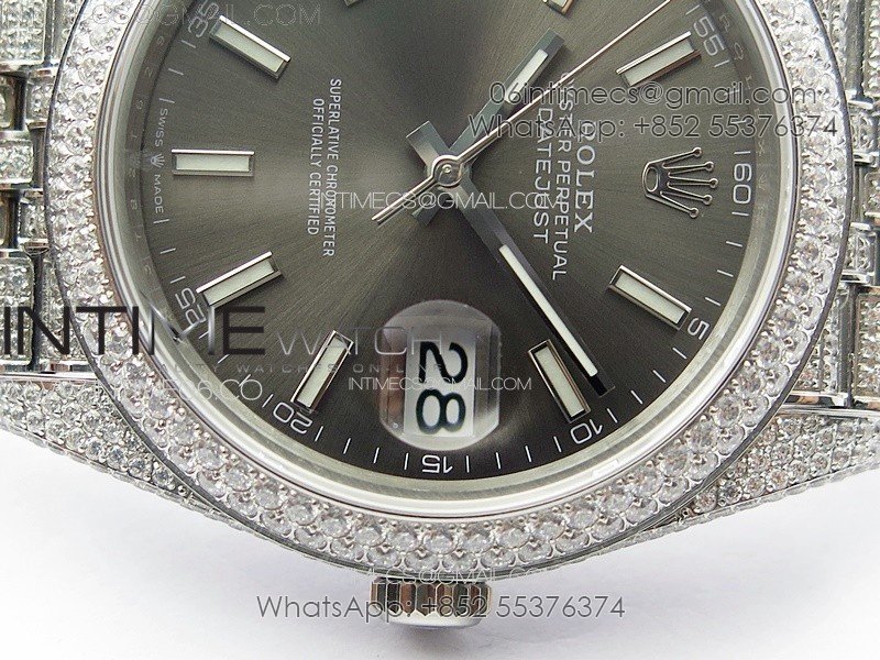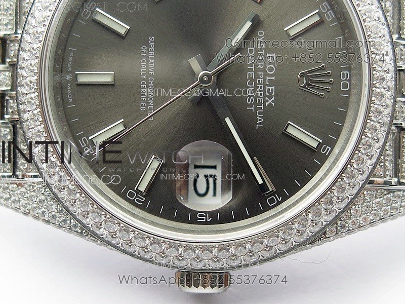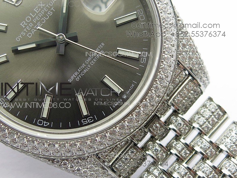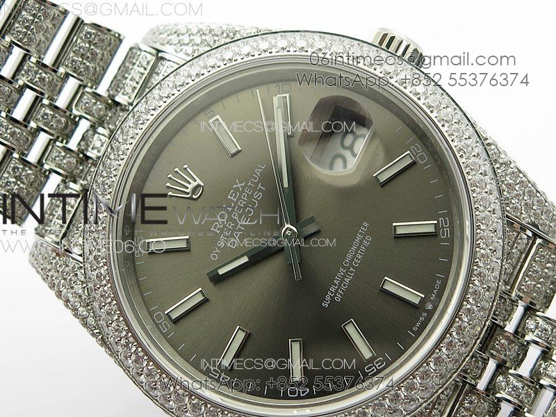 DateJust 41 126334 Full Paved Diamonds BP Best Edition Rhodium Dial Stick Markers on Jubilee Bracelet A2824