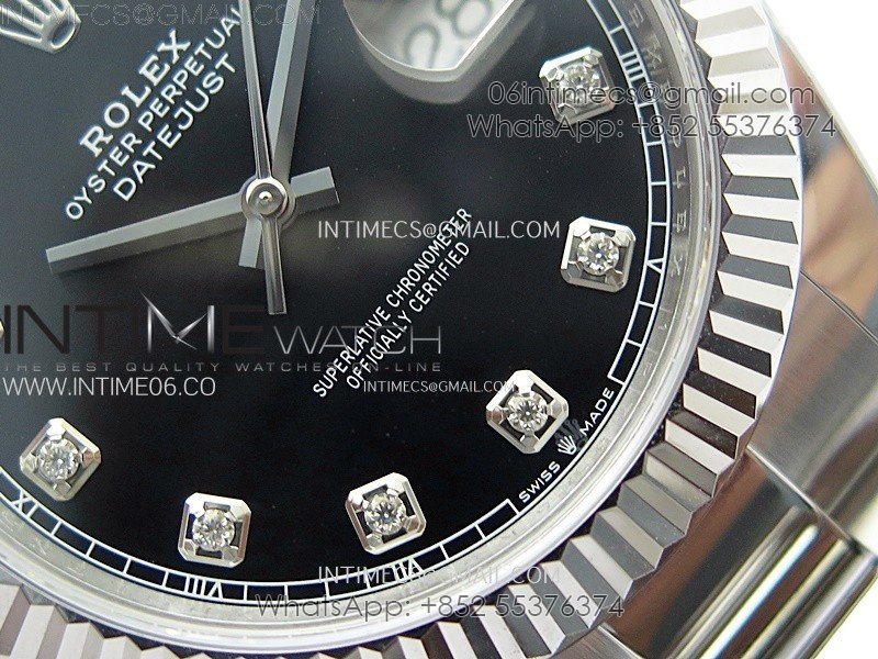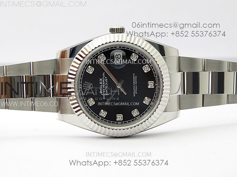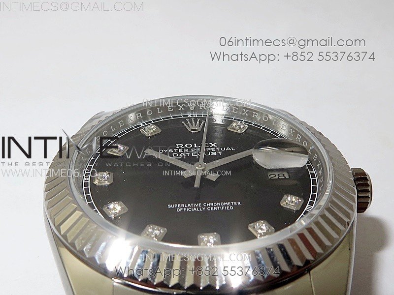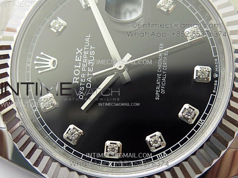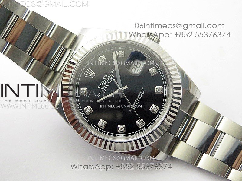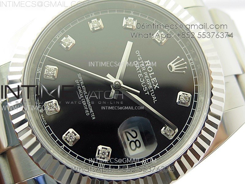 DateJust 41mm 126334 904 SS AR+F V2 1:1 Best Edition Fluted Bezel Black Dial Diamond Markers on Oyster Bracelet SH3235