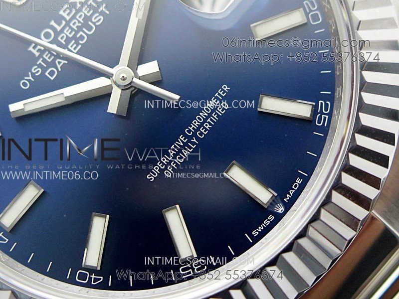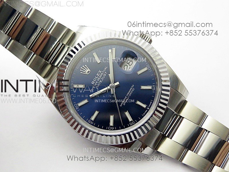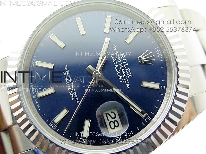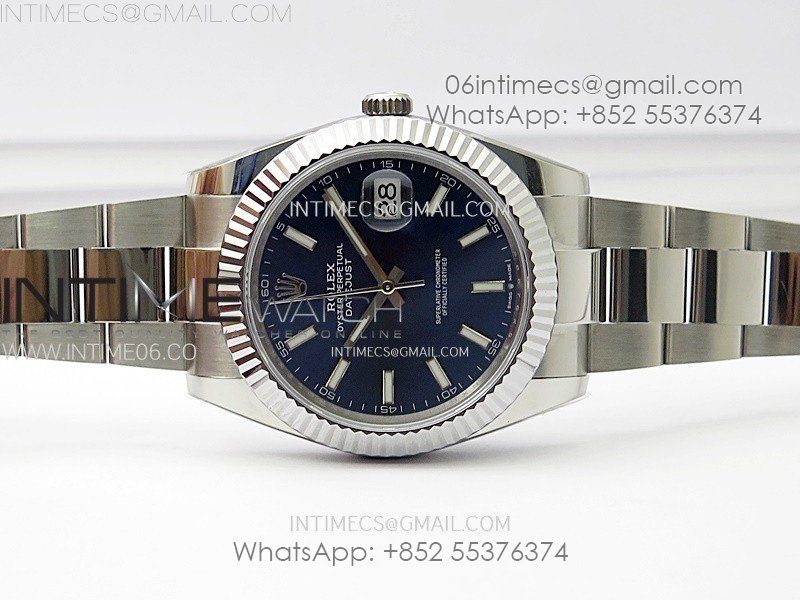 DateJust 41mm 126334 904 SS AR+F V2 1:1 Best Edition Fluted Bezel Blue Dial Sticks Markers on Oyster Bracelet SH3235