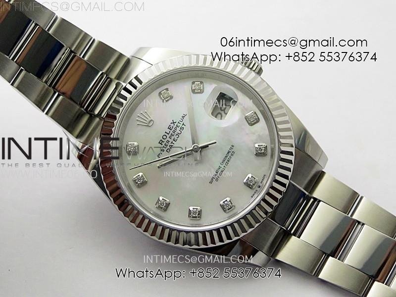 DateJust 41mm 126334 904 SS AR+F V2 1:1 Best Edition Fluted Bezel MOP Dial Diamond Markers on Oyster Bracelet SH3235