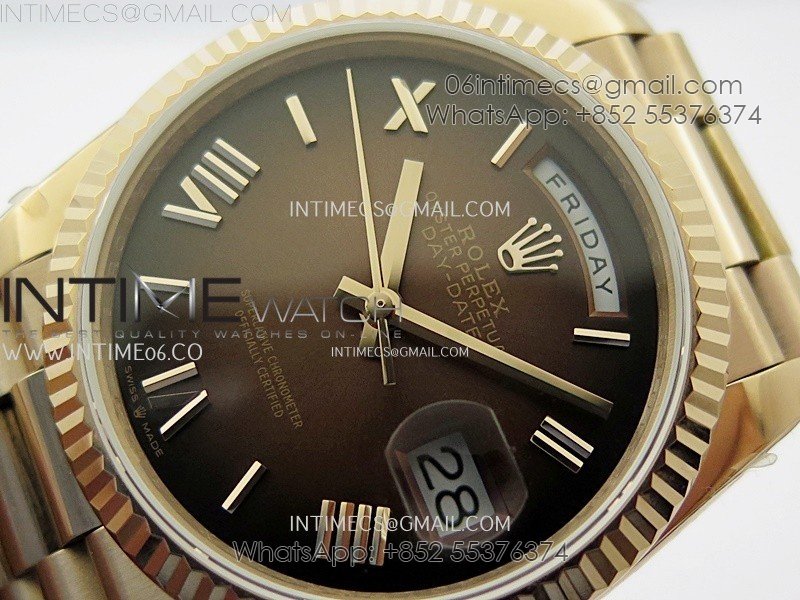 Day Date 128235 Gain Weight RG QF 1:1 Best Edition Brown Dial Roman Markers on RG President Bracelet