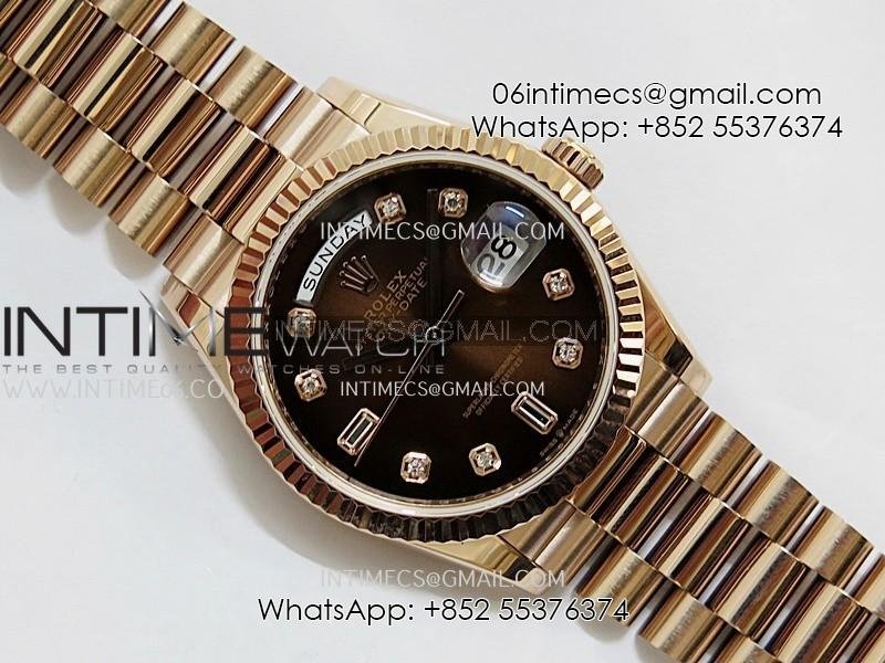 Day Date 128238 36mm RG KF 1:1 Best Edition Brown Ombre Dial Diamond Marker On President Bracelet A2836 (Gain Weight)