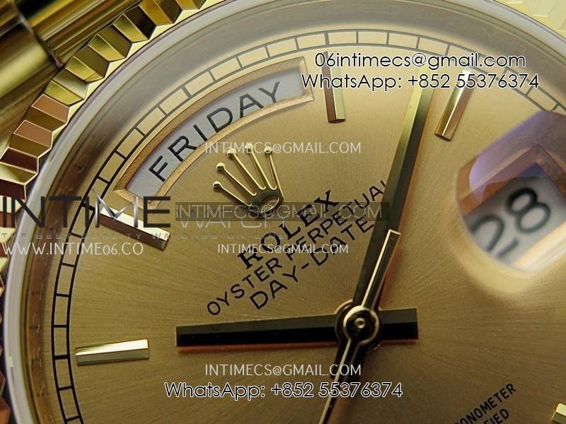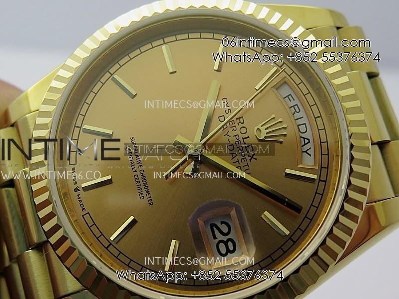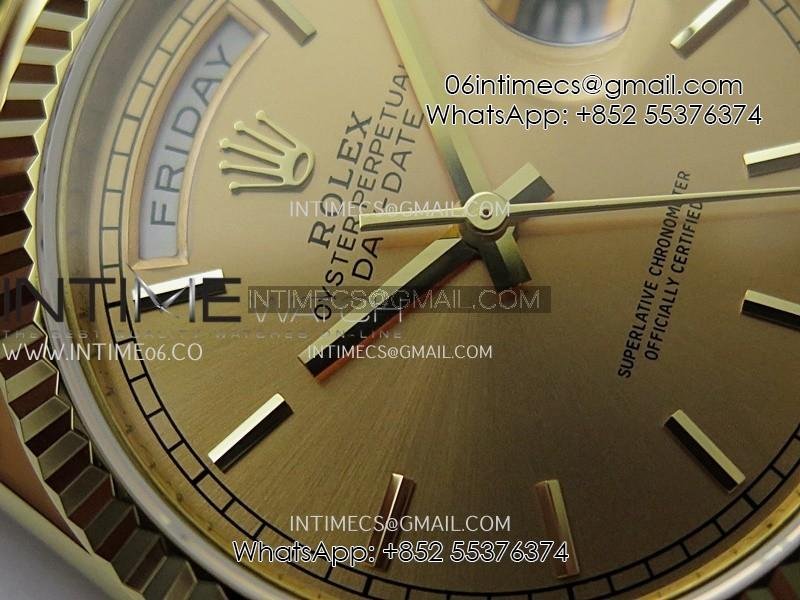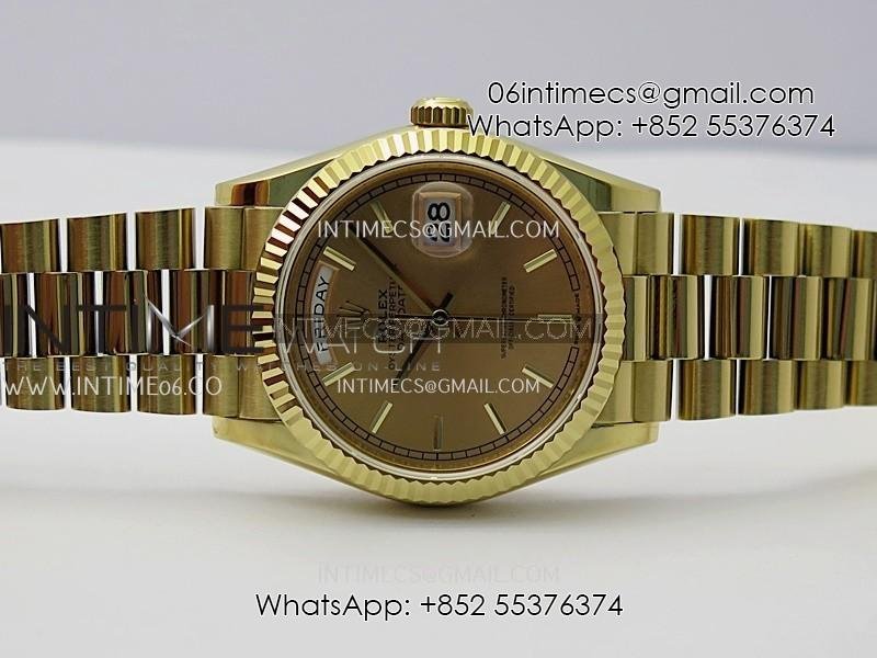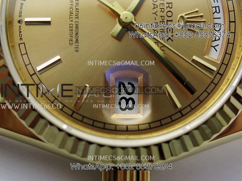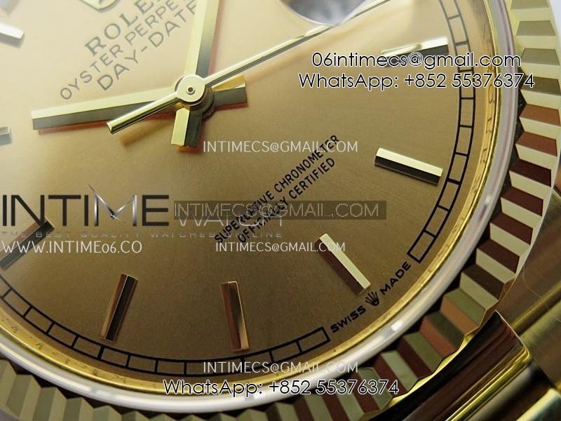 Day Date 128238 36mm YG KF 1:1 Best Edition Gold Dial Stick Marker On President Bracelet A2836 (Gain Weight)