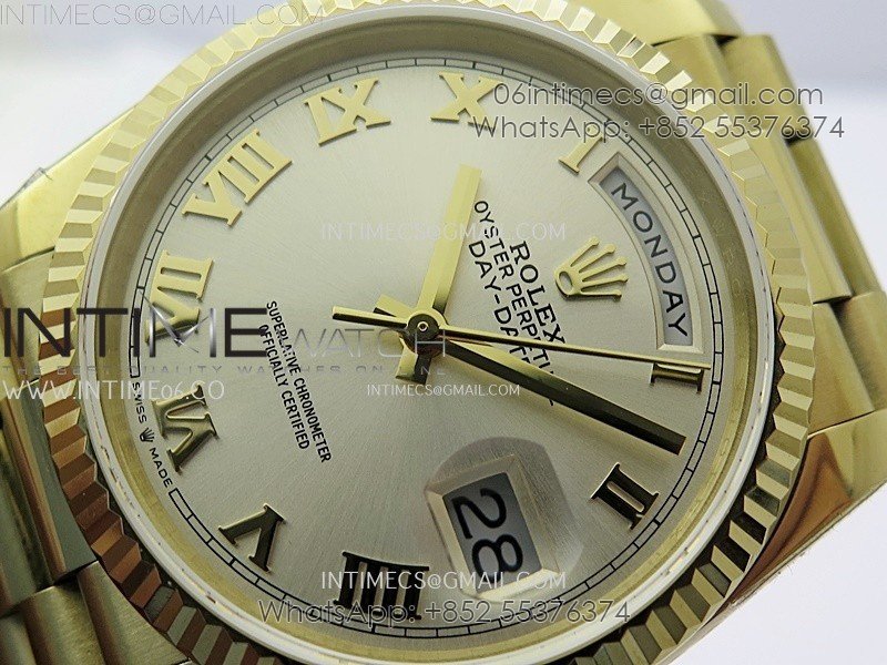 Day Date 128238 Gain Weight YG QF 1:1 Best Edition Champagne Dial Roman Markers on YG President Bracelet