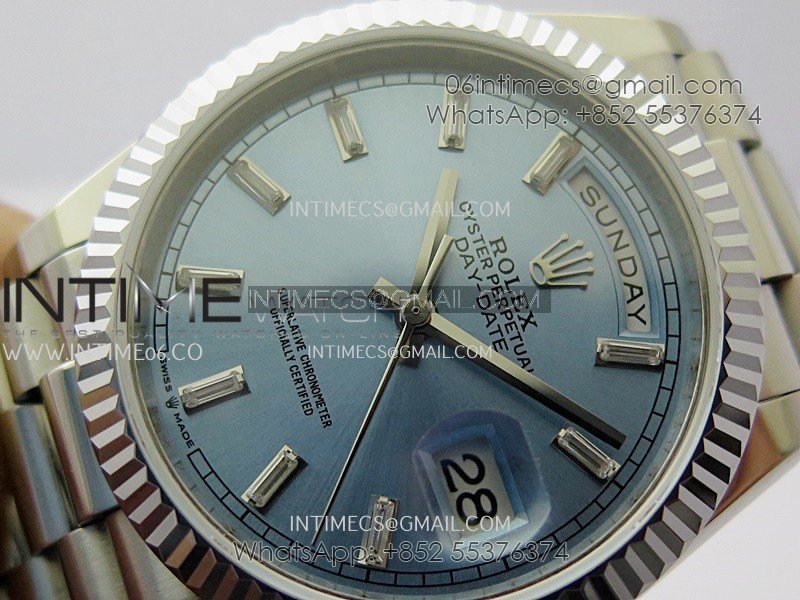 Day Date 128239 36mm KF 1:1 Best Edition Ice Blue Dial Ctystal Marker On President Bracelet A2836 (Gain Weight)