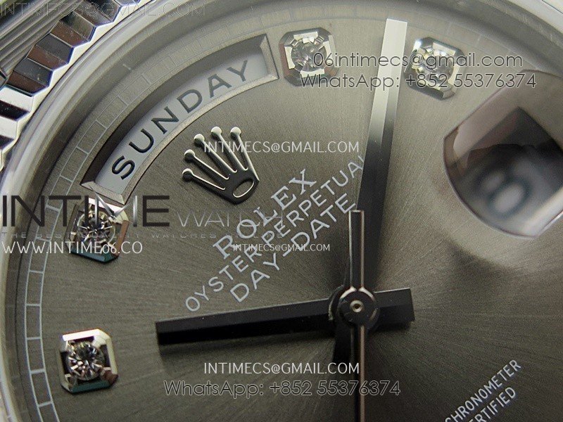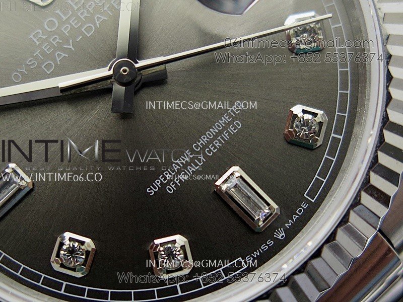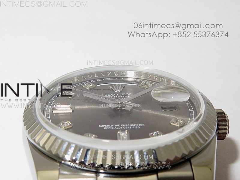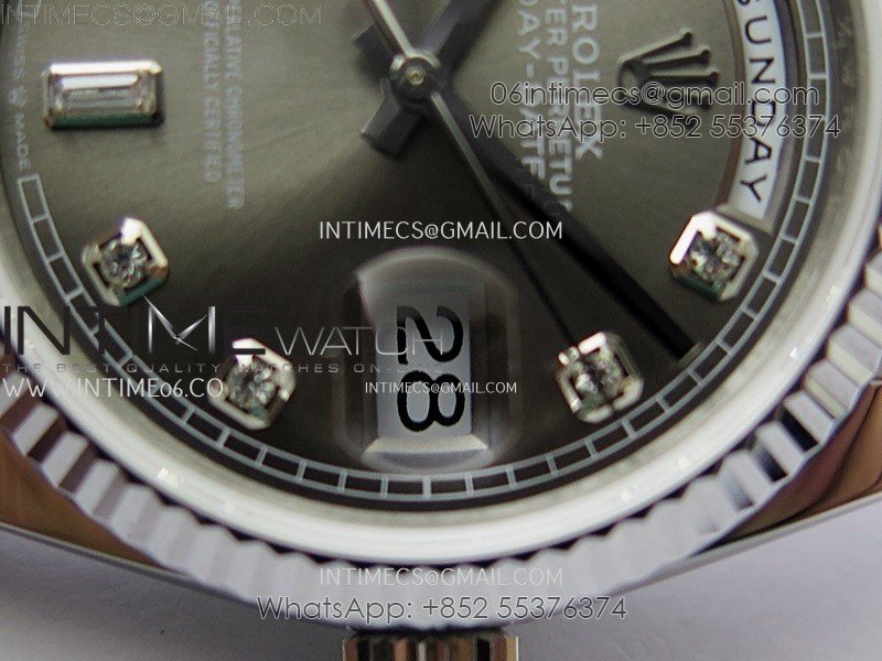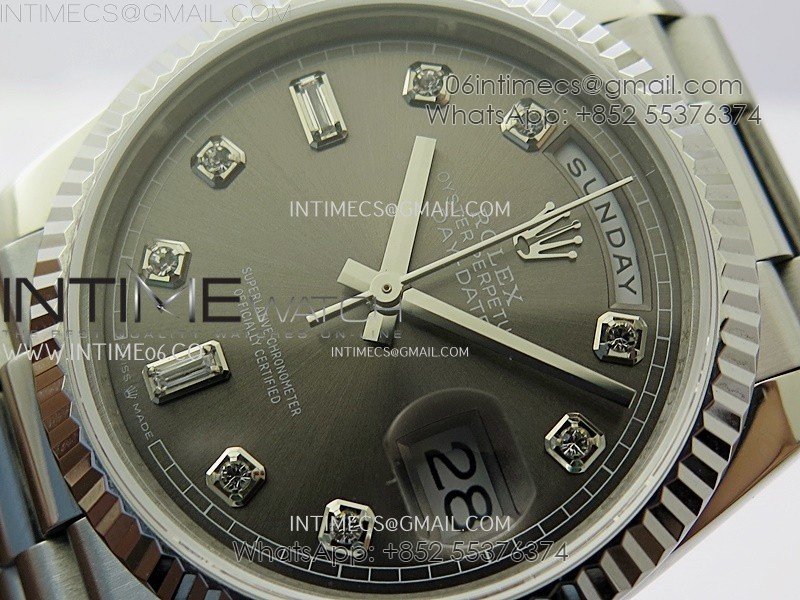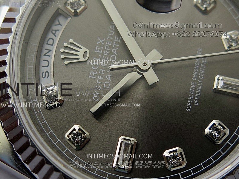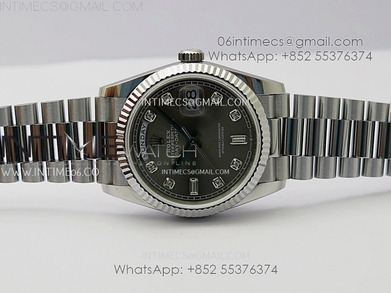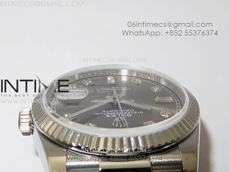 Day Date 128239 Gain Weight SS QF 1:1 Best Edition Gray Dial Diamond Markers on SS President Bracelet