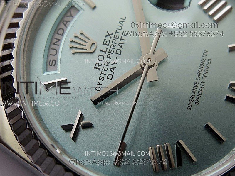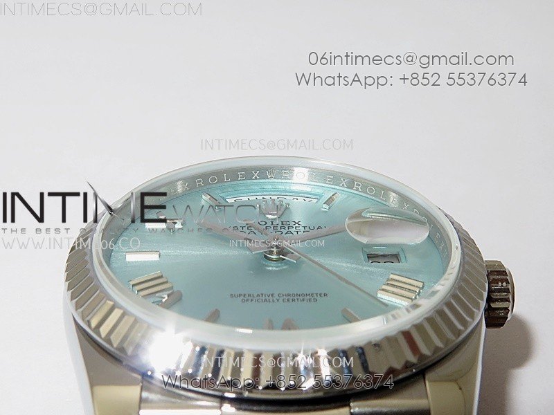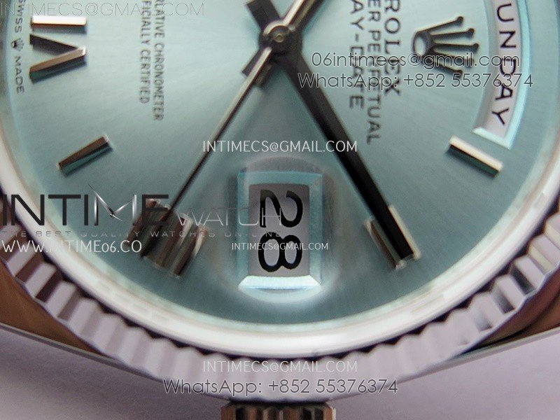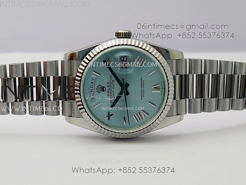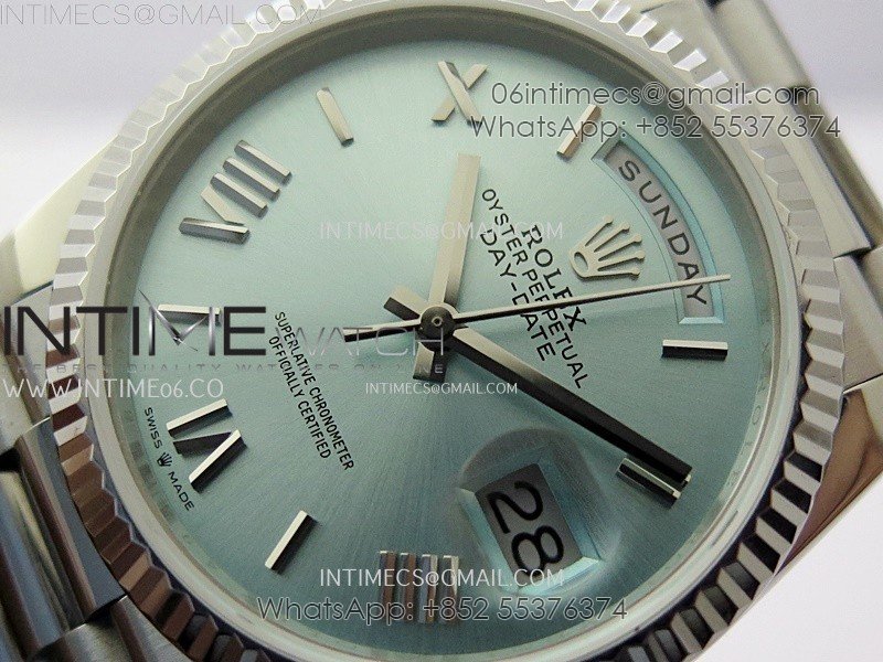 Day Date 128239 Gain Weight SS QF 1:1 Best Edition Ice Blue Dial Roman Markers on SS President Bracelet