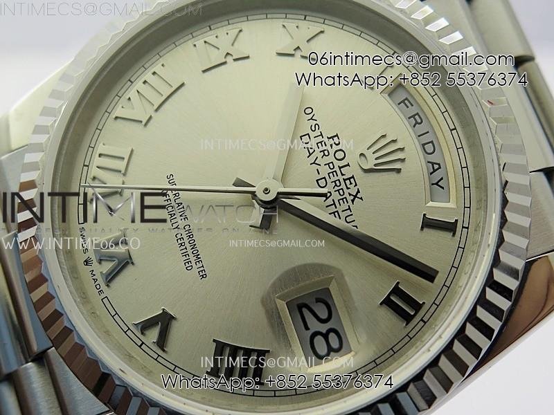 Day Date 128239 Gain Weight SS QF 1:1 Best Edition Silver Dial Roman Markers on SS President Bracelet