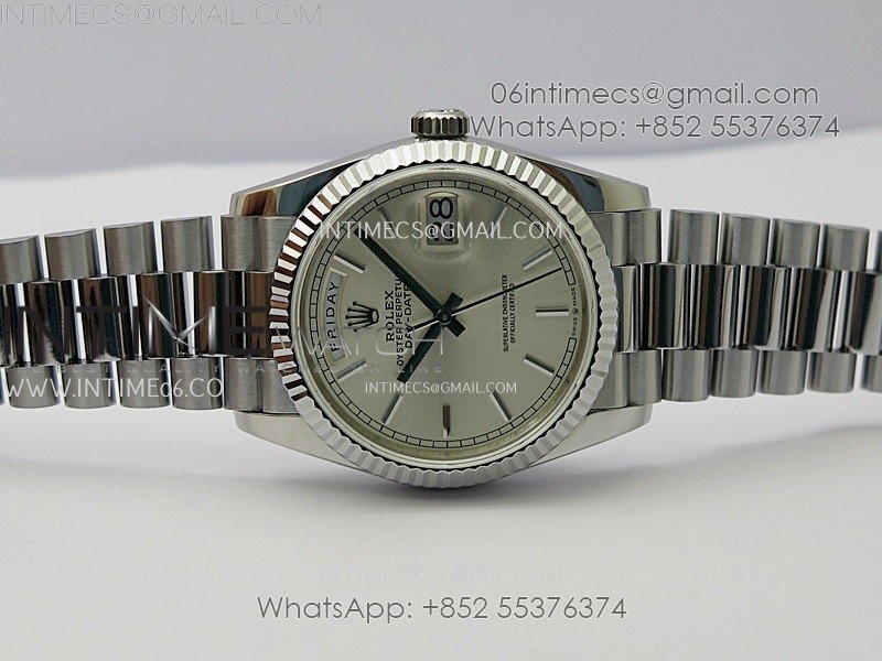 Day Date 128239 Gain Weight SS QF 1:1 Best Edition Silver Dial Stick Markers on SS President Bracelet