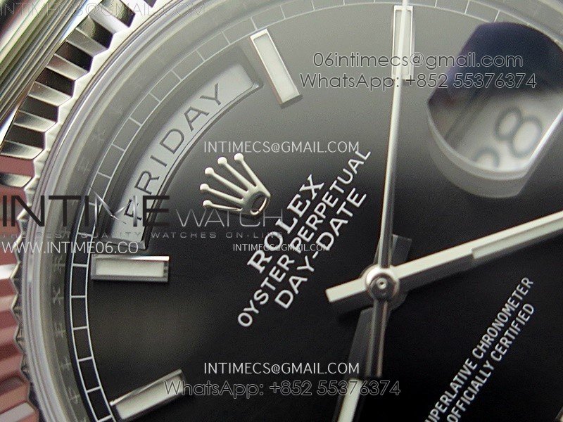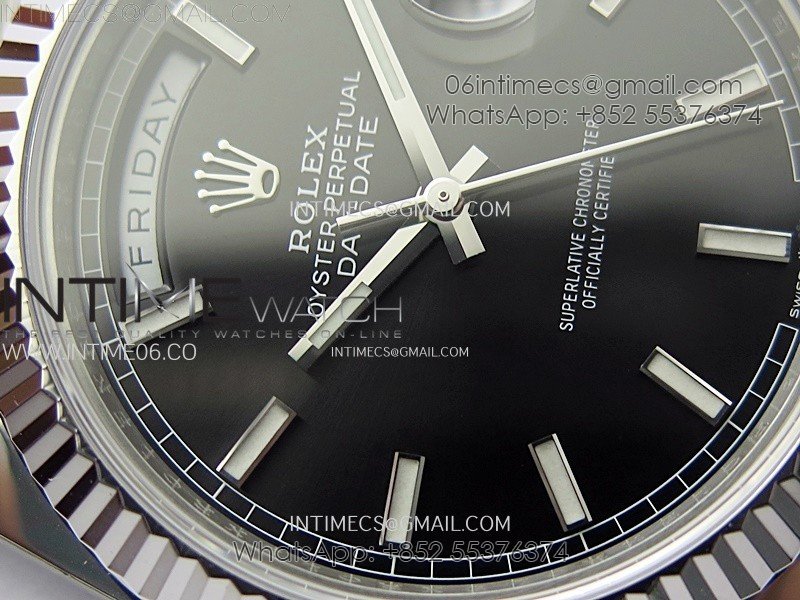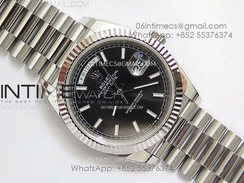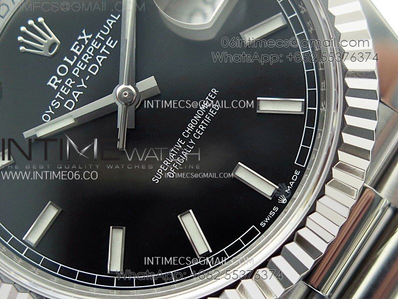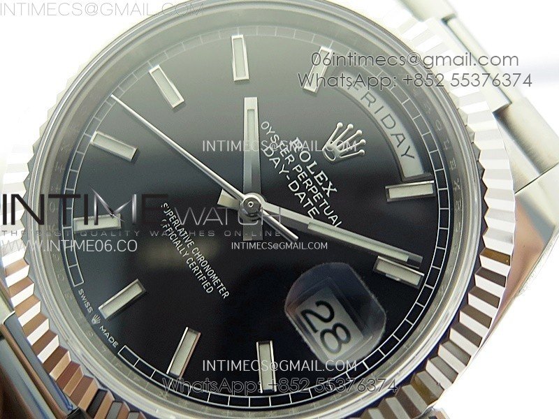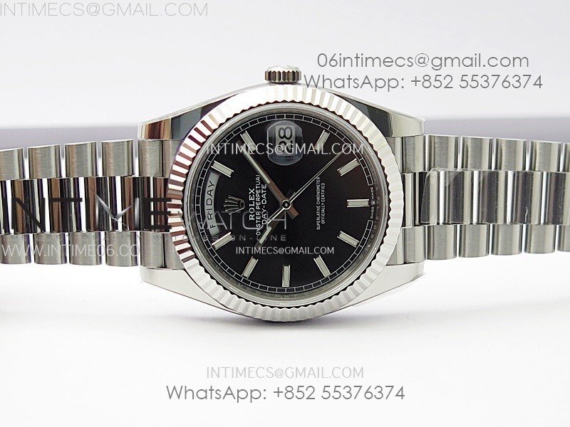 Day Date 228236 40mm 904L SS 1:1 AR+F Best Edition Black Dial Sticks Markers on SS President Bracelet SA3255