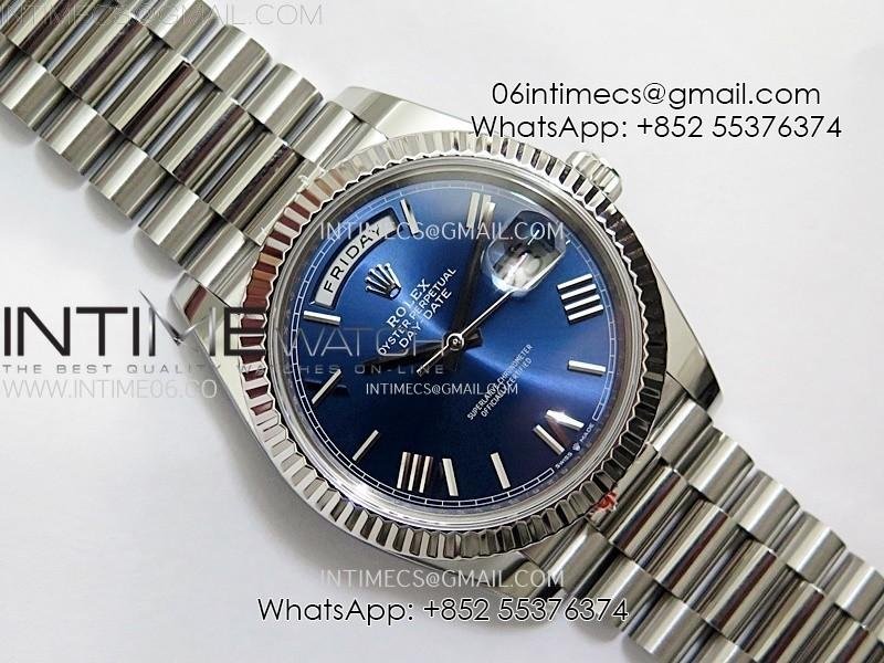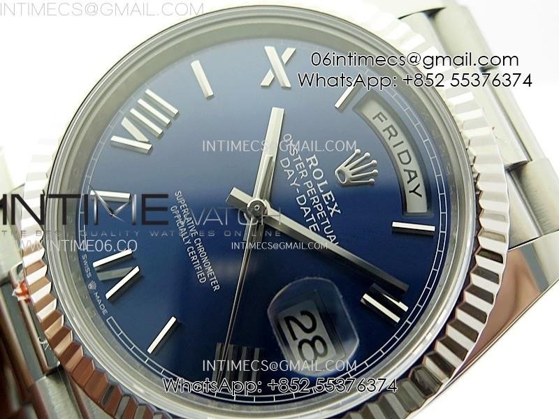 Day Date 228236 40mm 904L SS 1:1 AR+F Best Edition Blue Dial Roman Markers on SS President Bracelet SA3255