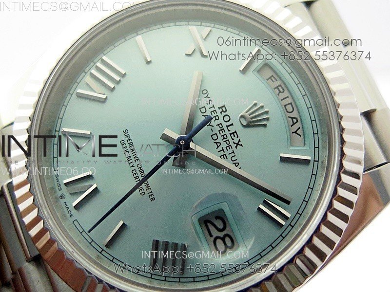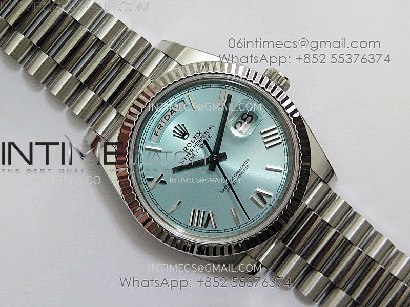 Day Date 228236 40mm 904L SS 1:1 AR+F Best Edition Ice Blue Dial Roman Markers on SS President Bracelet SA3255