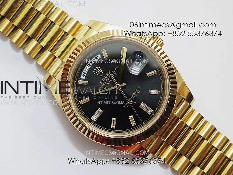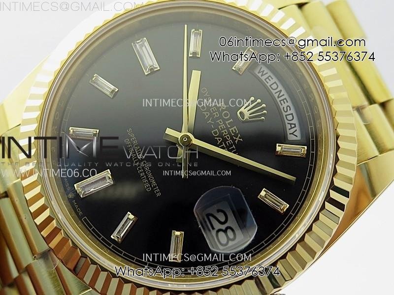 Day Date 228238 40mm 904L YG 1:1 AR+F Best Edition Black Dial T Diamonds Markers on YG President Bracelet SA3255 (Gain Weight)