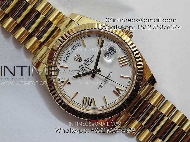Day Date 228238 40mm 904L YG 1:1 AR+F Best Edition White Dial Roman Markers on YG President Bracelet SA3255 (Gain Weight)
