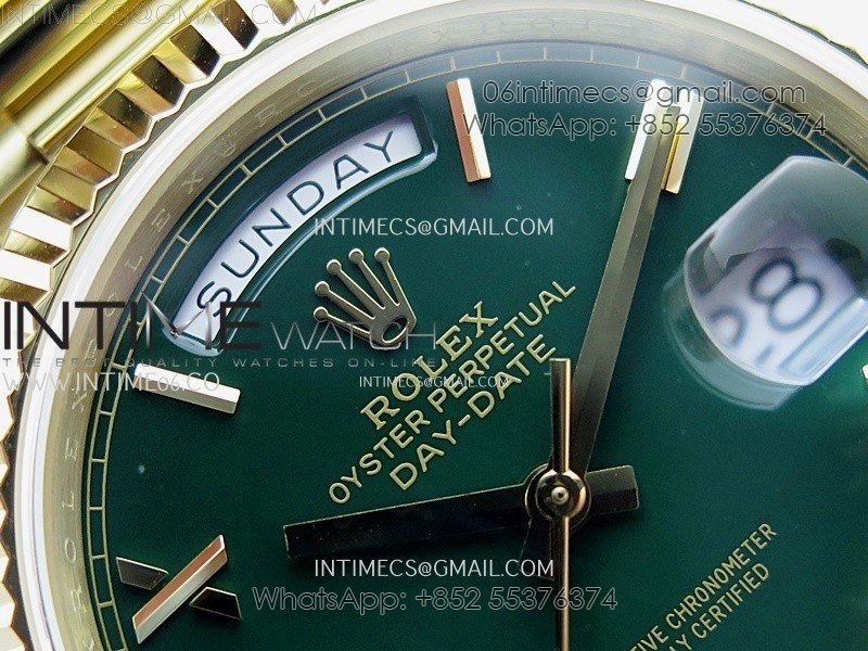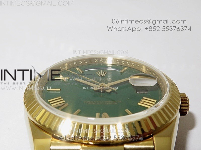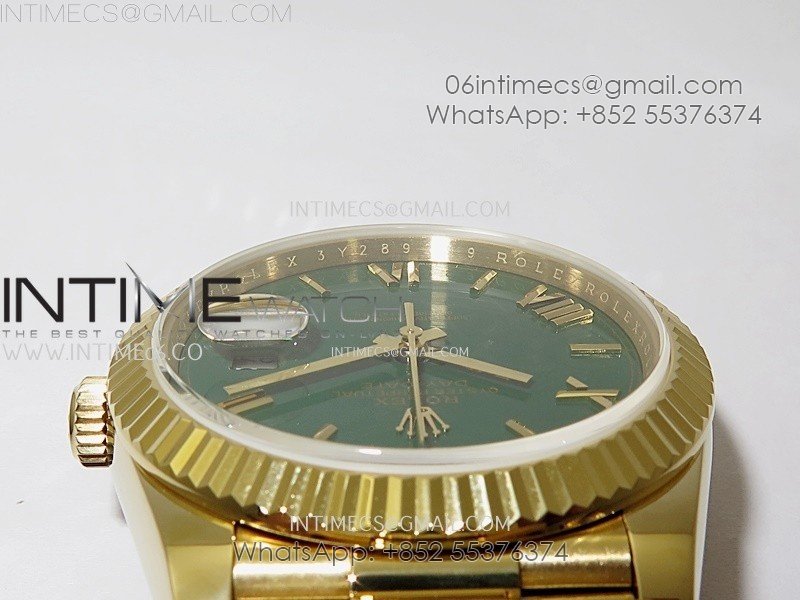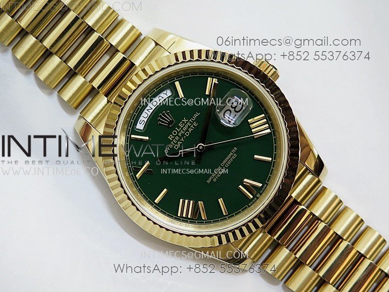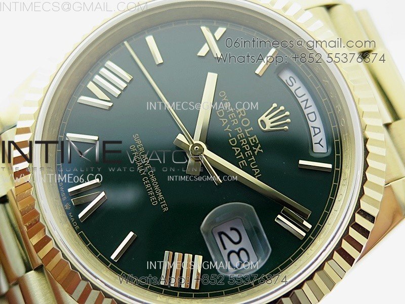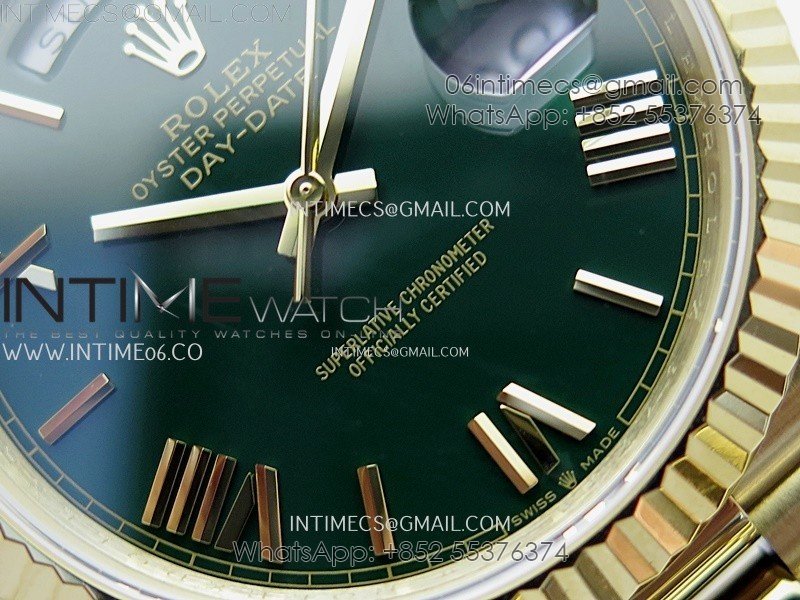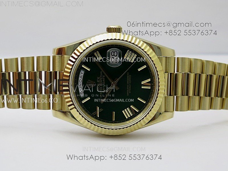 Day Date 228238 40mm 904L YG QF Gain Weight Green Dial Roman Markers on YG President Bracelet A2836