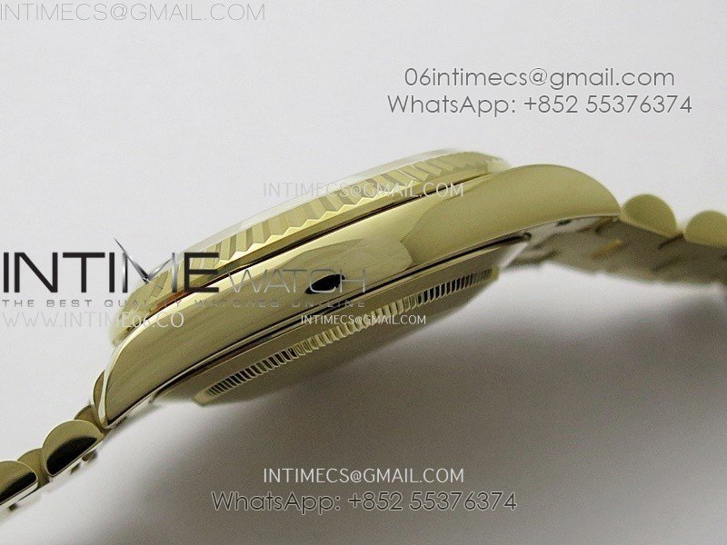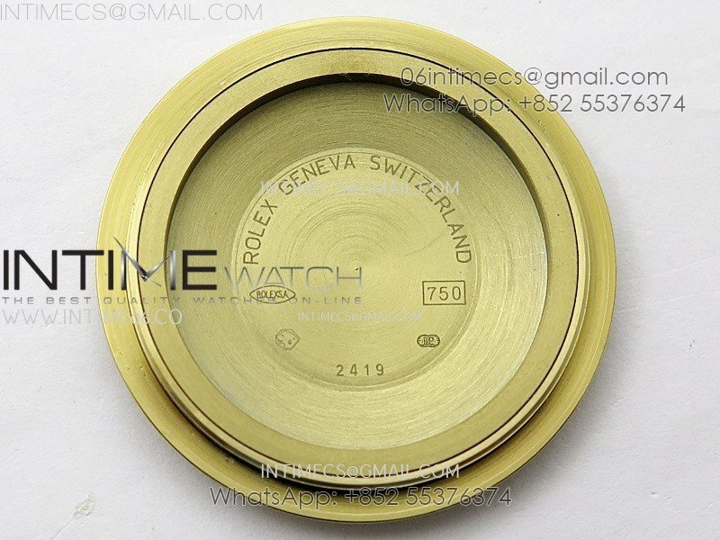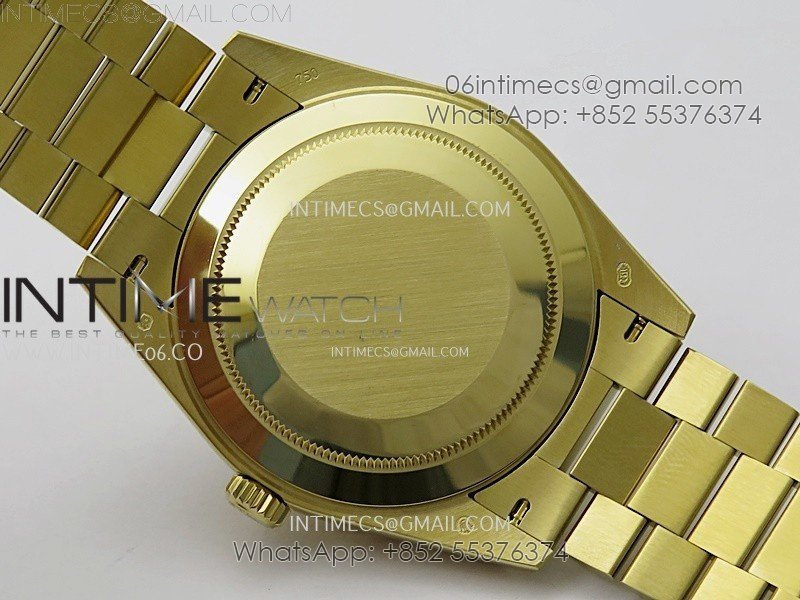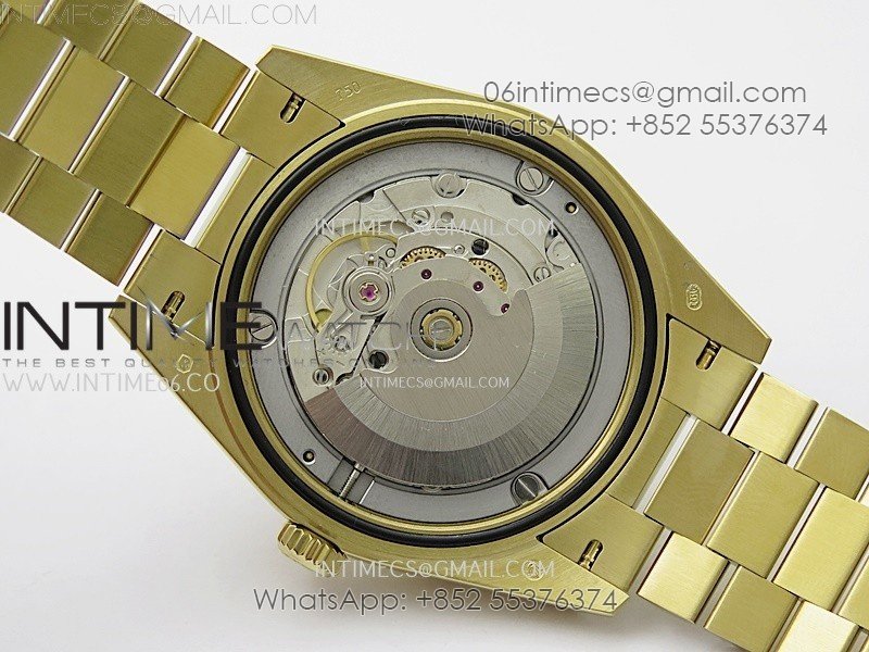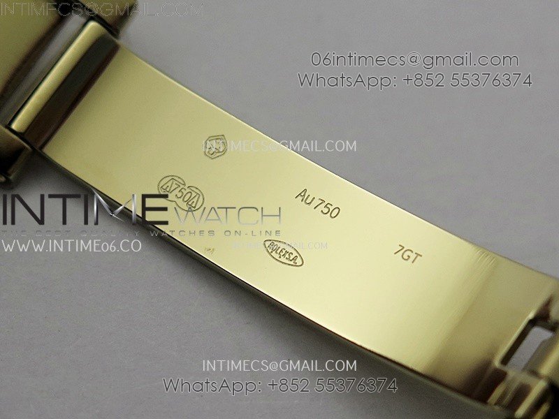 Case 18K yellow gold plated solid 904L stainless steel case, Cu-W metal to increase watch weight (about 185g) to match the genuine gold watch weight
