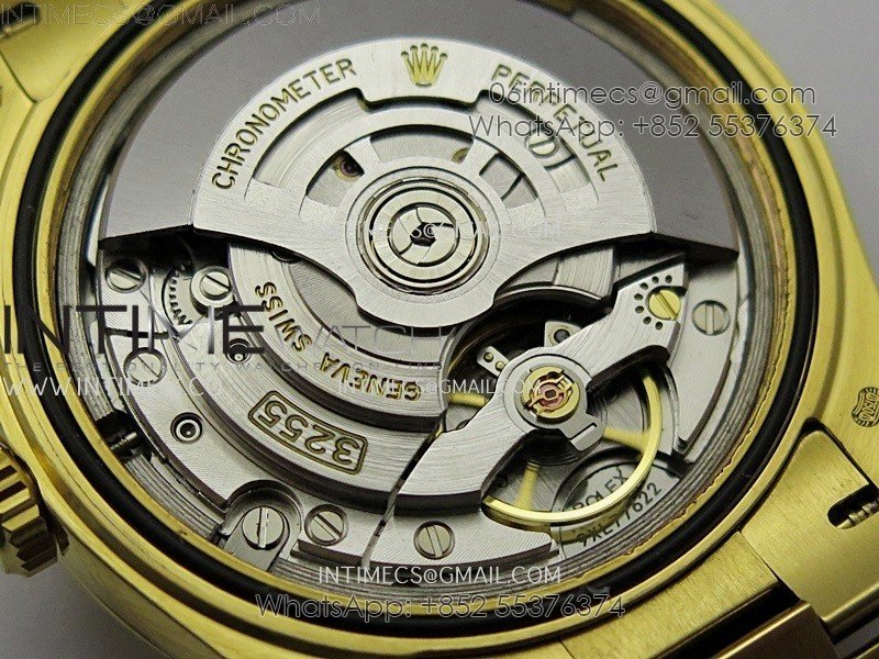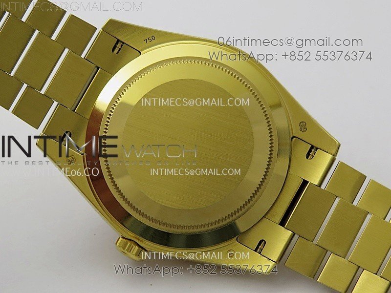 Case 18K yellow gold plated solid 904L stainless steel case, Cu-W metal to increase watch weight to match the genuine gold watch weight