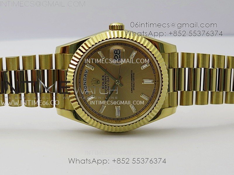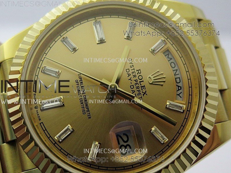 Day Date 228238 40mm YG KF 1:1 Best Edition Gold Dial Crystal Markers On RG President Bracelet SA3255 (Gain Weight)