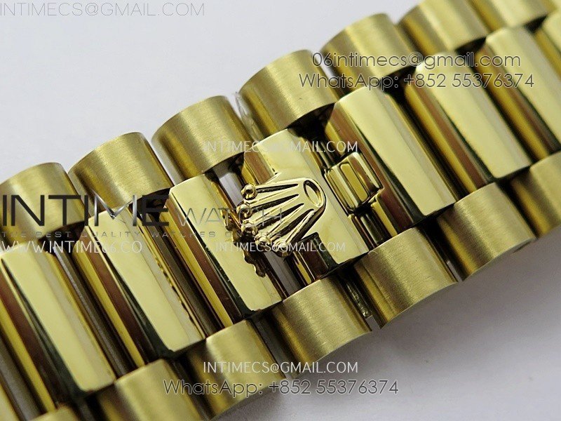 Strap 18K yellow gold plated solid 904L stainless steel bracelet, Cu-W metal to increase watch weight to match the genuine gold watch weight