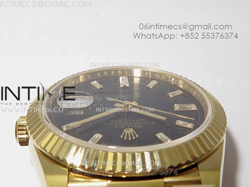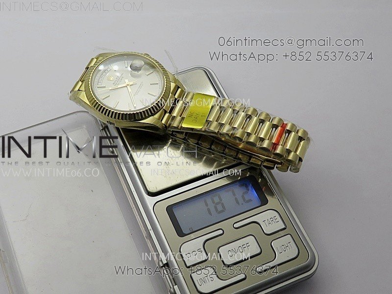 Case 18K yellow gold plated solid 904L stainless steel case, Cu-W metal to increase watch weight to match the genuine gold watch weight, the whole watch is about 190g