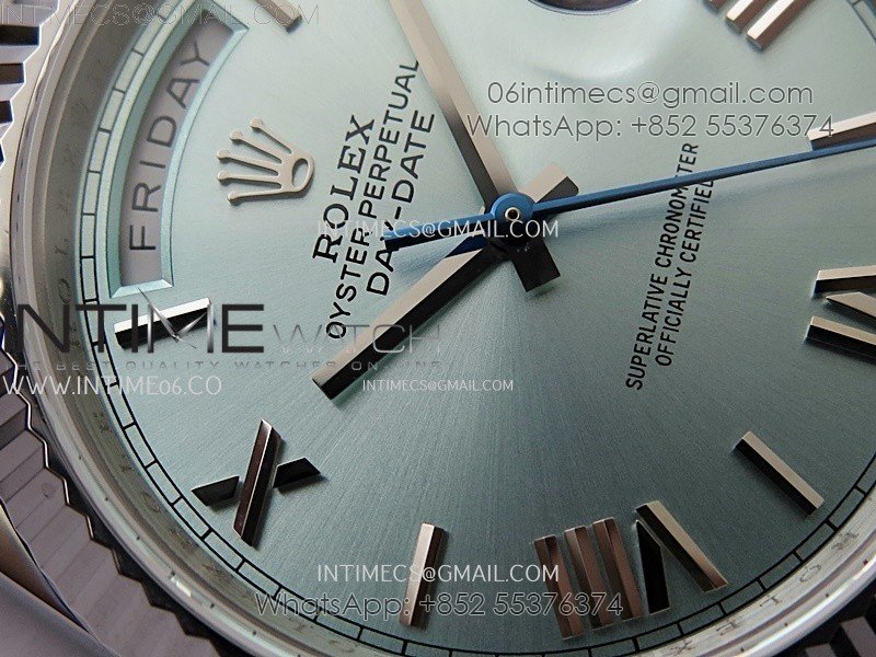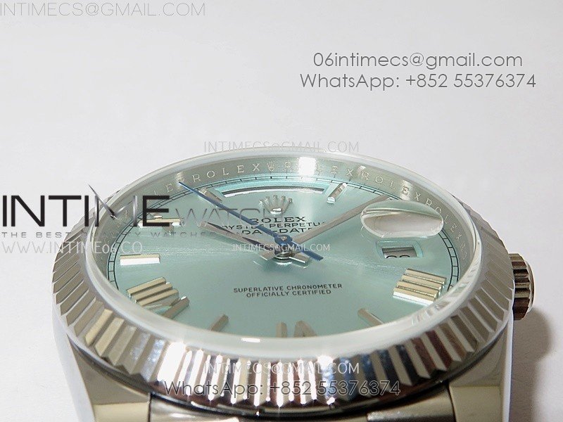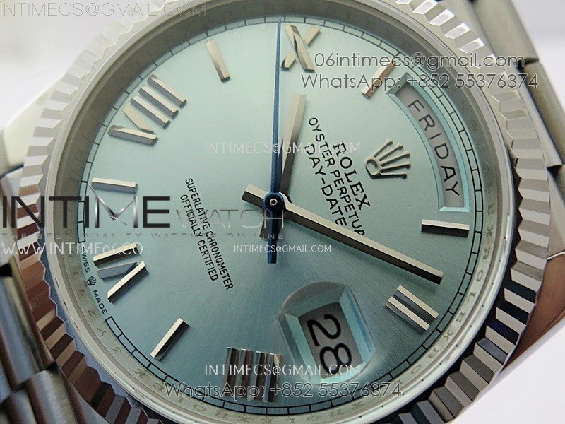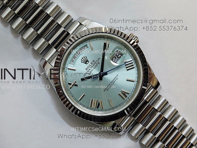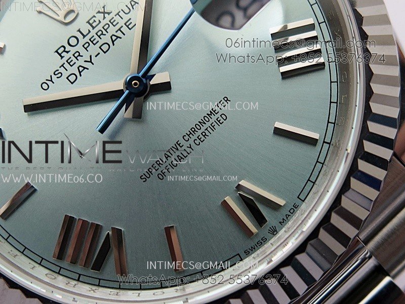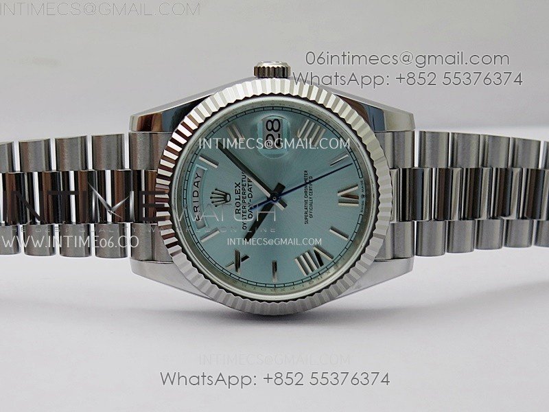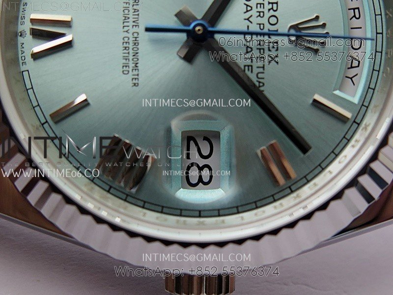 Day Date 228239 40mm 904L SS Bezel QF Gain Weight Ice Blue Dial Roman Markers on SS President Bracelet A2836