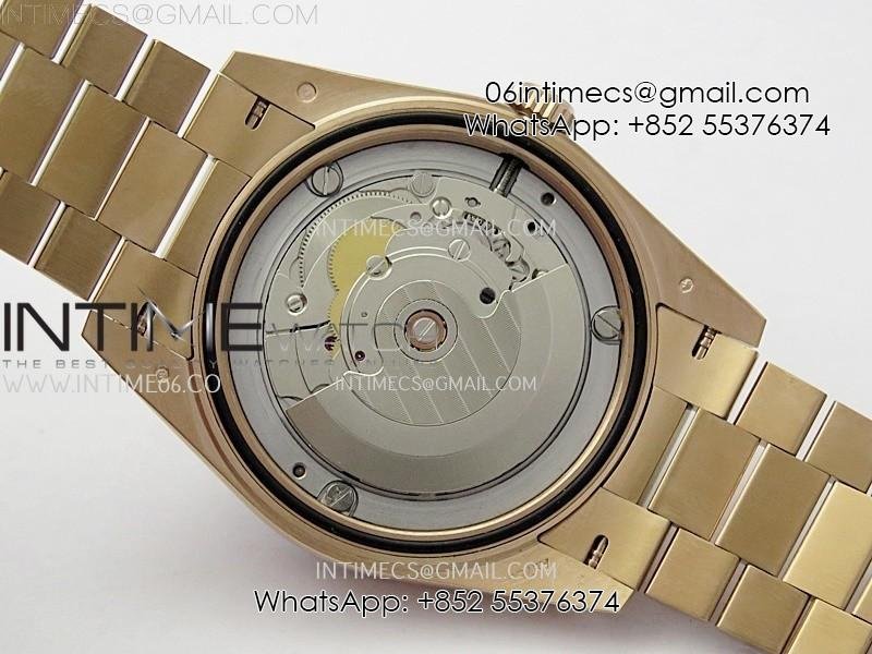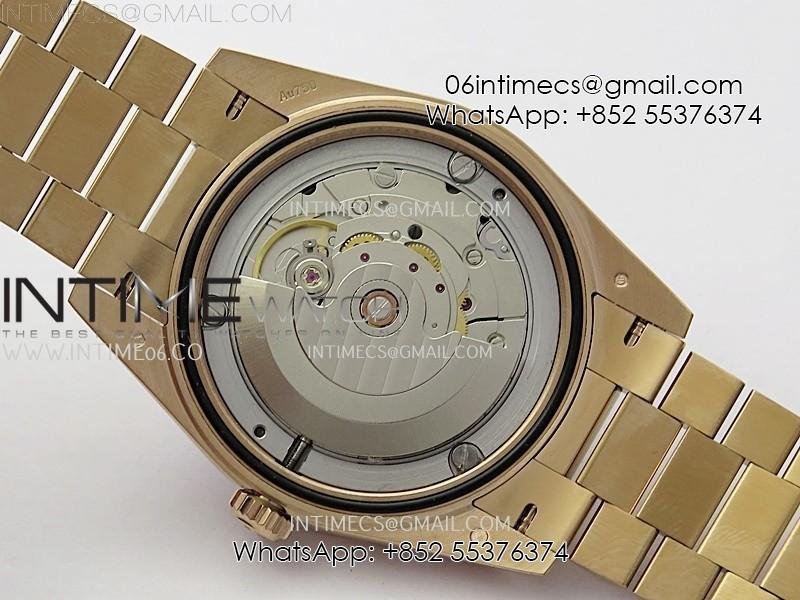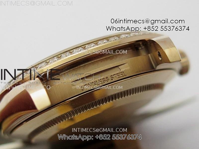 Case 18K rose gold plated solid 904L stainless steel case, Cu-W metal to increase watch weight to match the genuine gold watch weight, the whole watch is about 190g