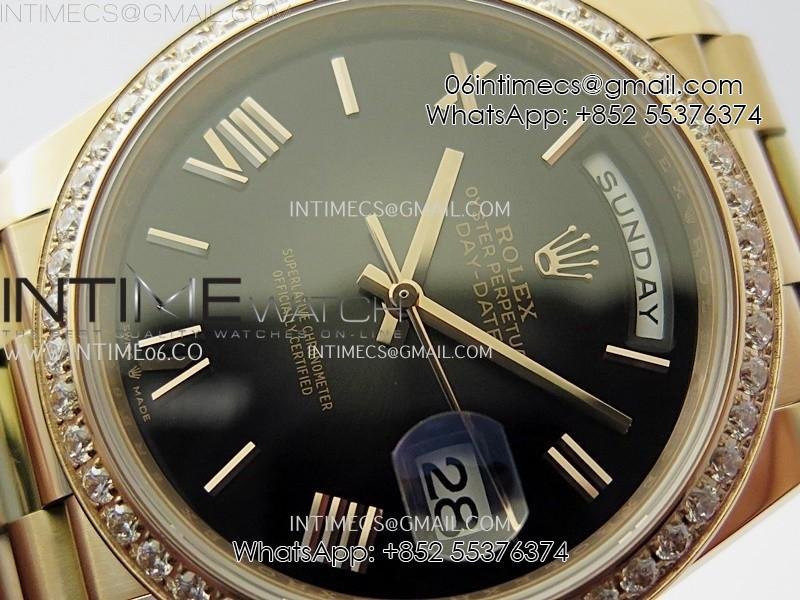 Day Date 228345 40mm RG Noob 1:1 Best Dark Sunburst Black Roman Dial on President Bracelet A2836 (Gain Weight)
