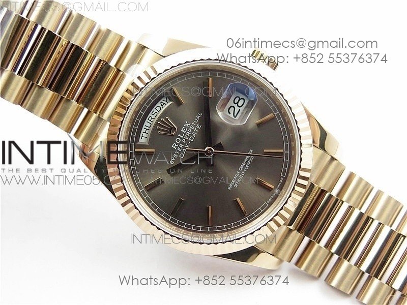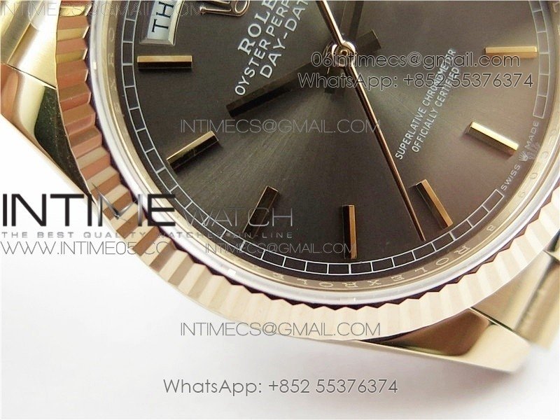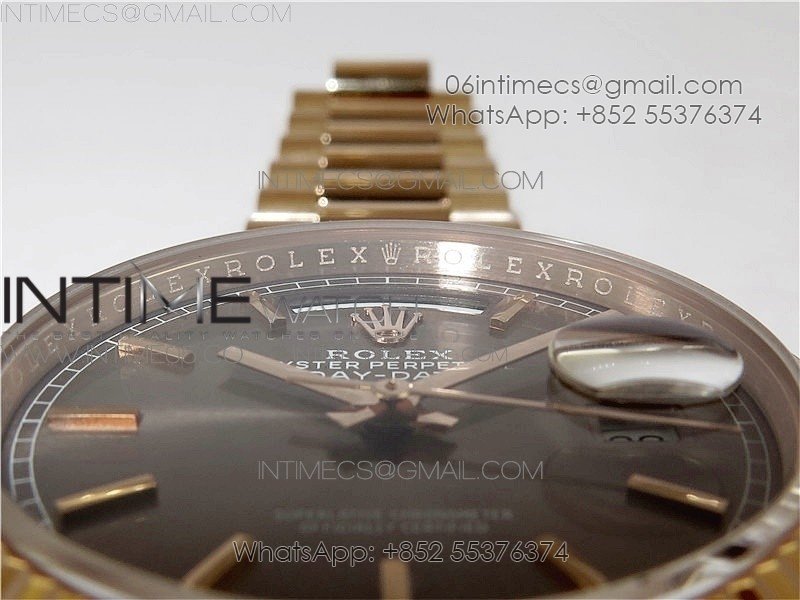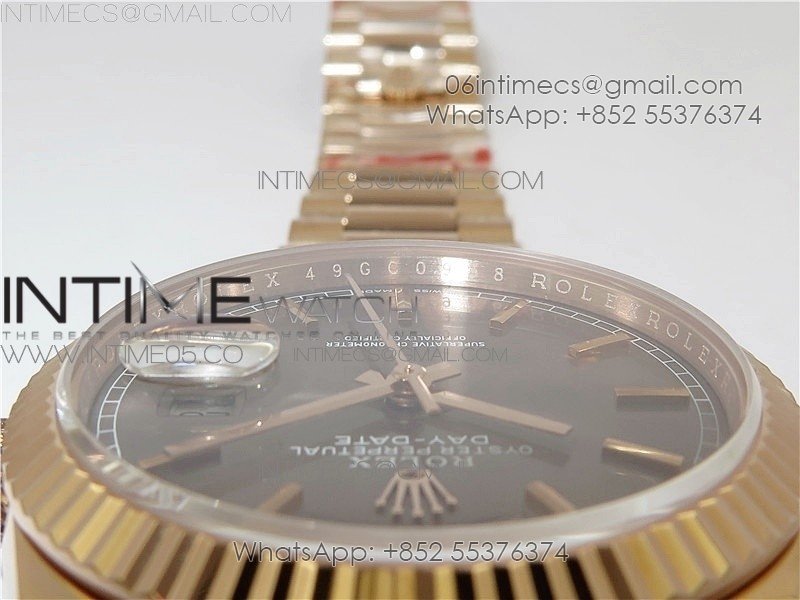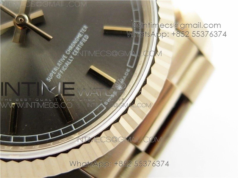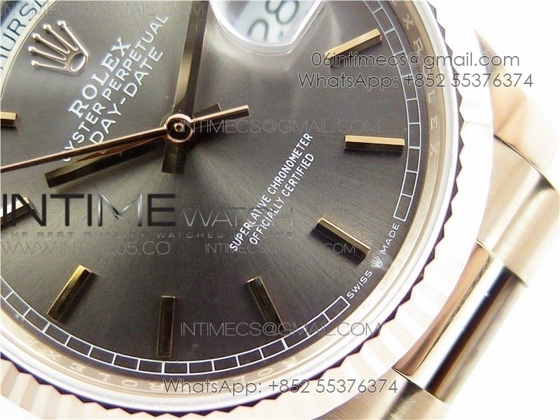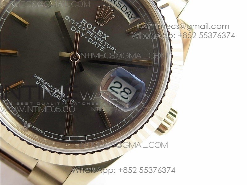 Day-Date 36 128239 RG BP Best Edition Gray Sticks Markers Dial on RG President Bracelet
