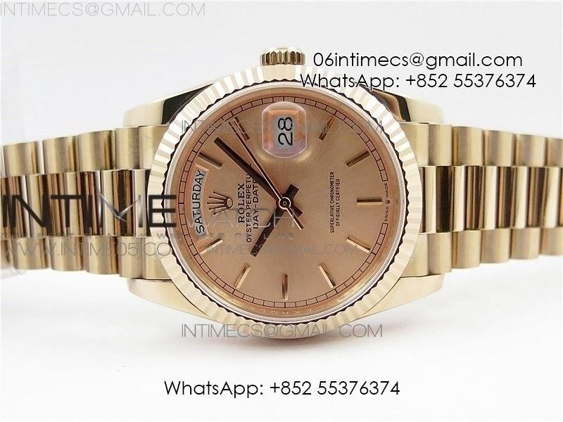 Day-Date 36 128239 RG BP Best Edition Pink Gold Sticks Markers Dial on RG President Bracelet