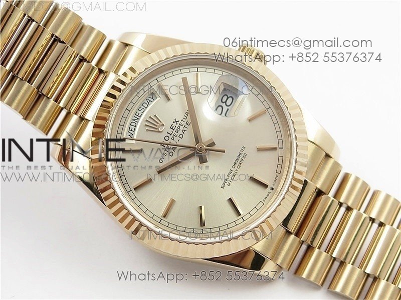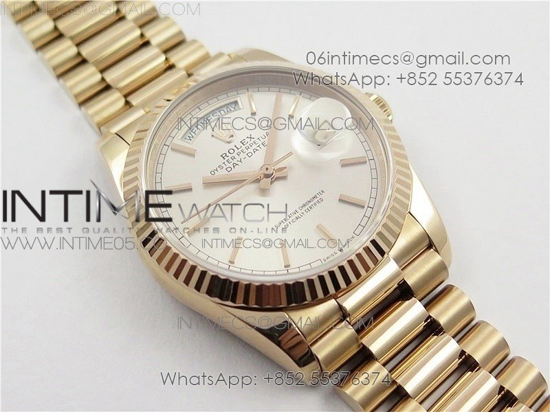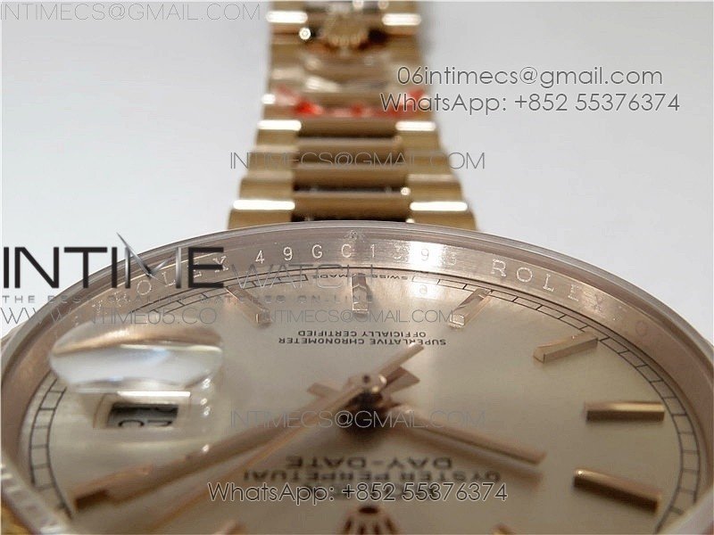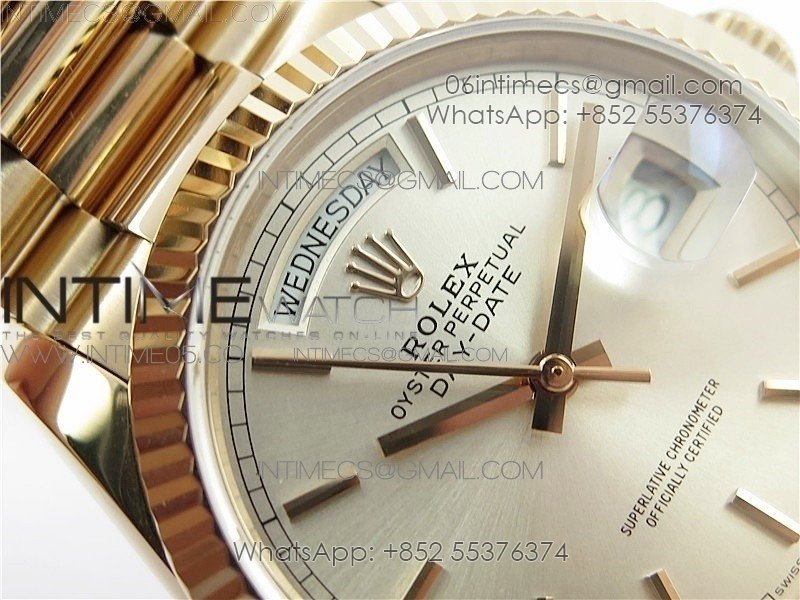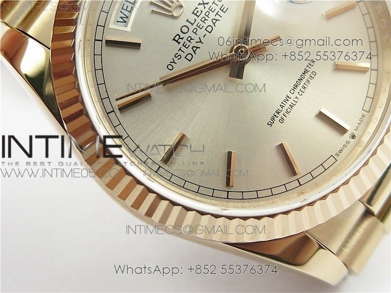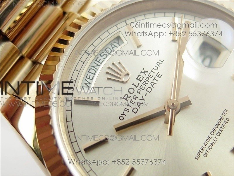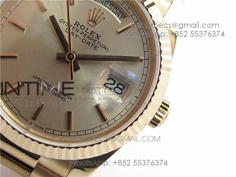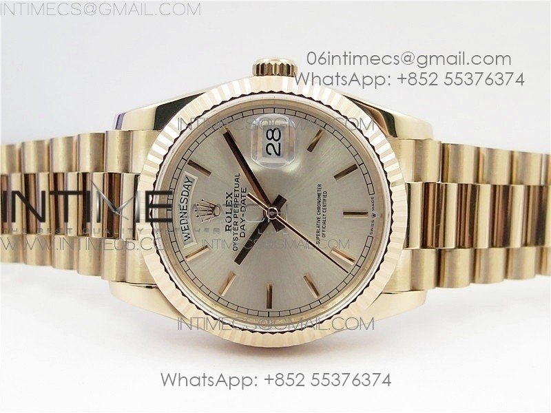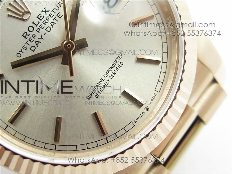 Day-Date 36 128239 RG BP Best Edition Silver Sticks Markers Dial on RG President Bracelet