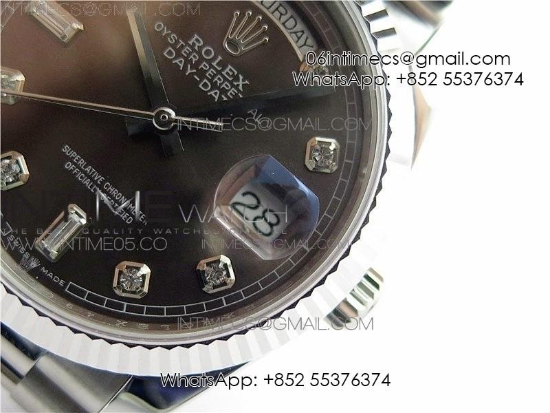 Day-Date 36 128239 SS BP Best Edition Brown Crystal Markers Dial on SS President Bracelet