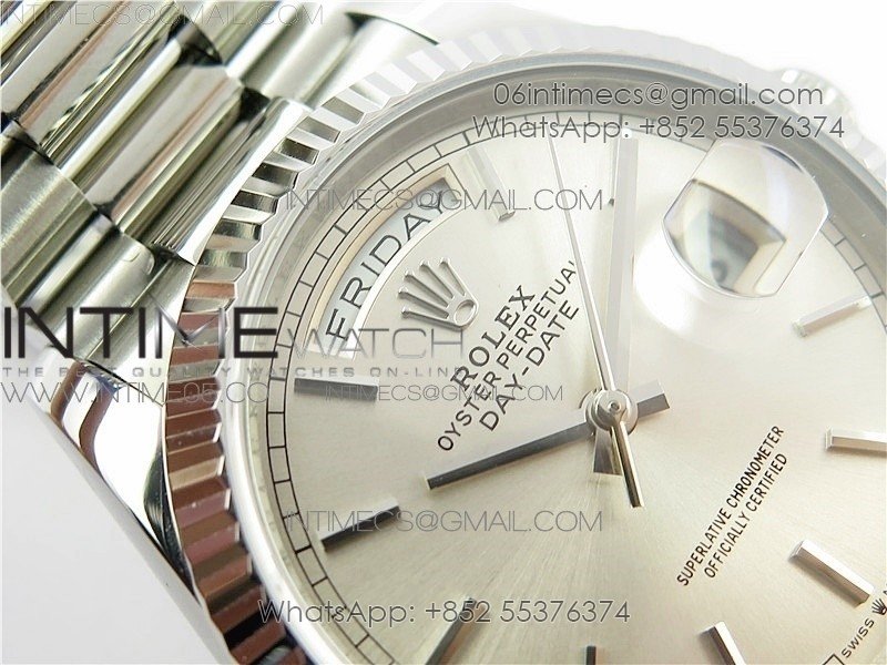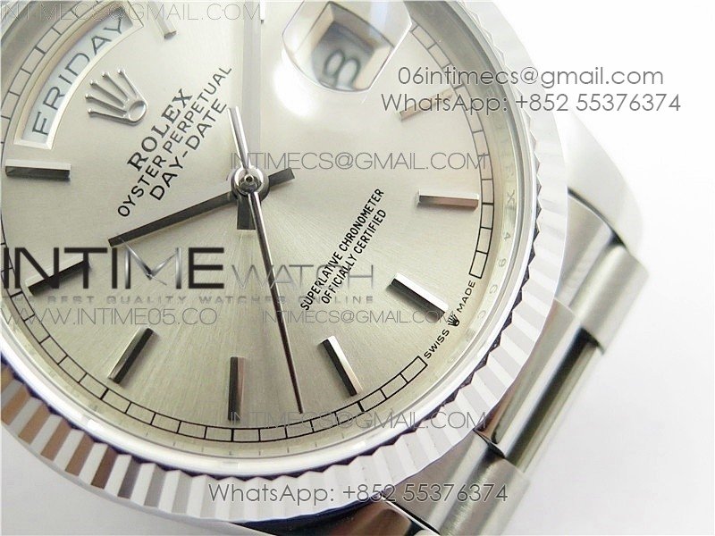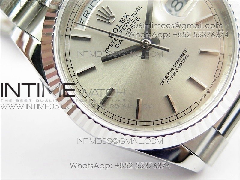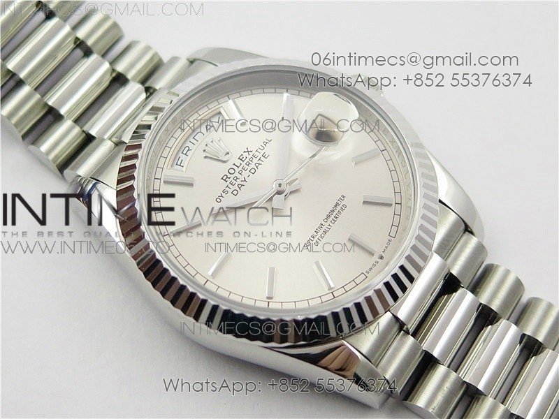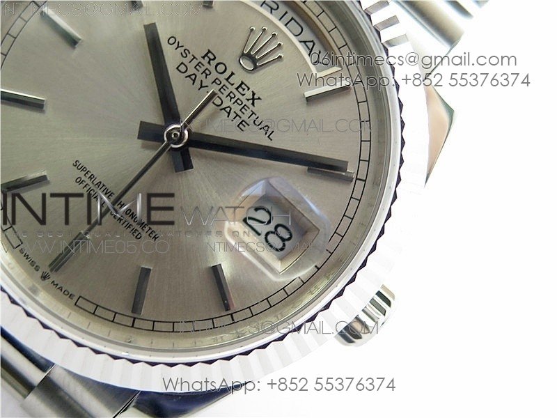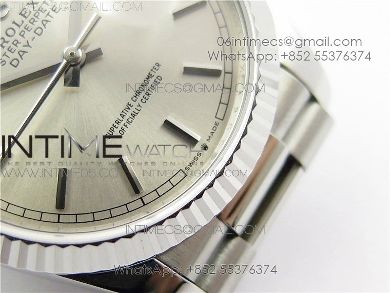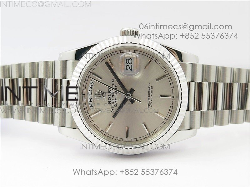 Day-Date 36 128239 SS BP Best Edition Silver Sticks Markers Dial on SS President Bracelet