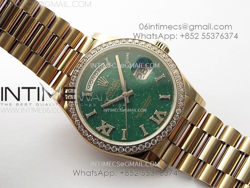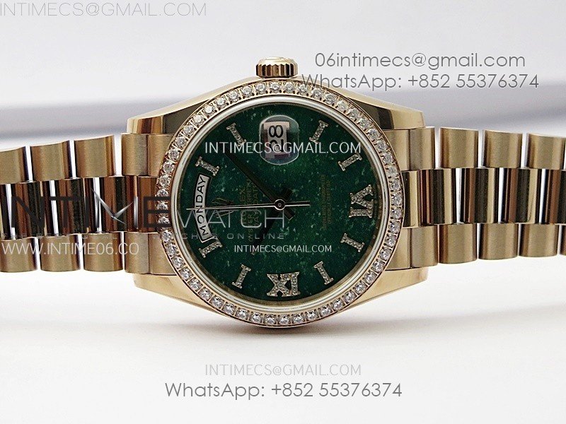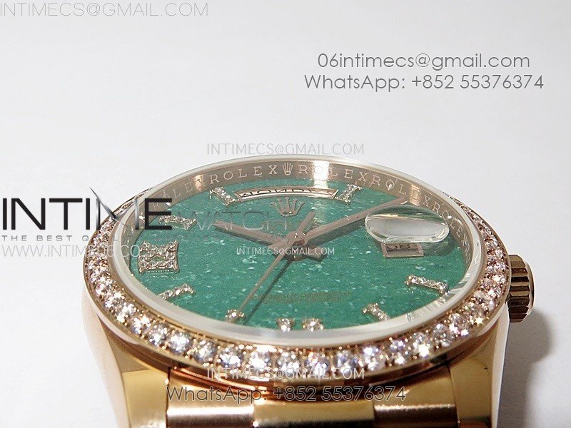 Day Date 36mm Gain Weight RG/tungsten APSF 1:1 Best Edition Green Dial Diamond Markers on SS President Bracelet A3255