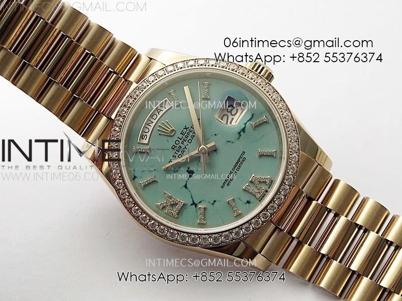 Day Date 36mm Gain Weight RG/tungsten APSF 1:1 Best Edition Turquoise Dial Diamond Markers on SS President Bracelet A3255