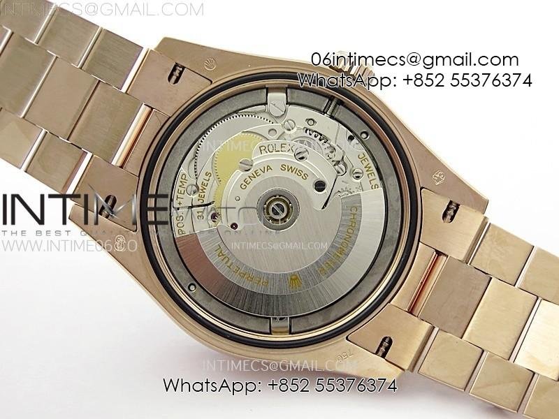 Case 18K Rose gold plated solid 904L stainless steel + tungsten case to gain more weight to match the genuine watch weight (almost 135 gram)