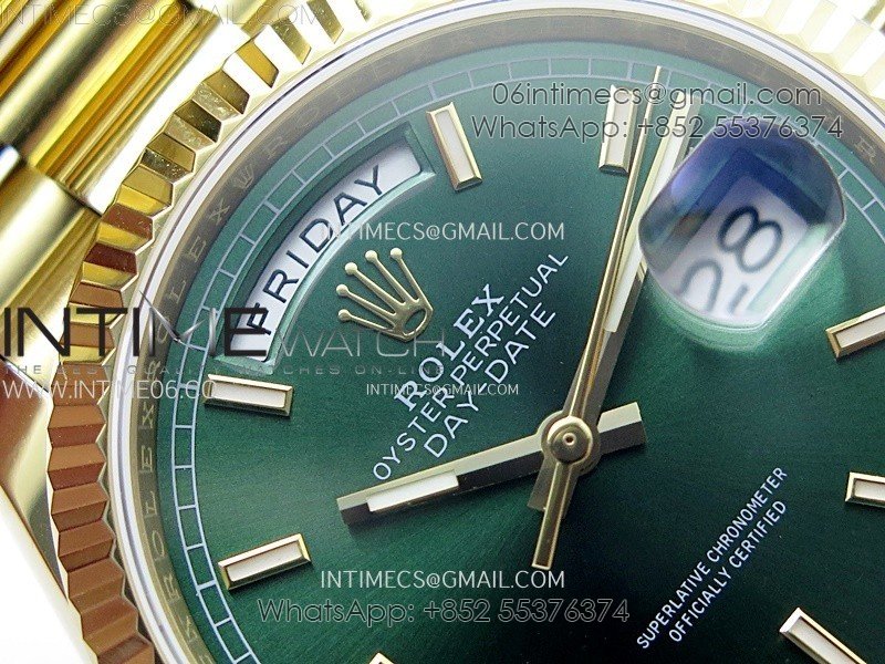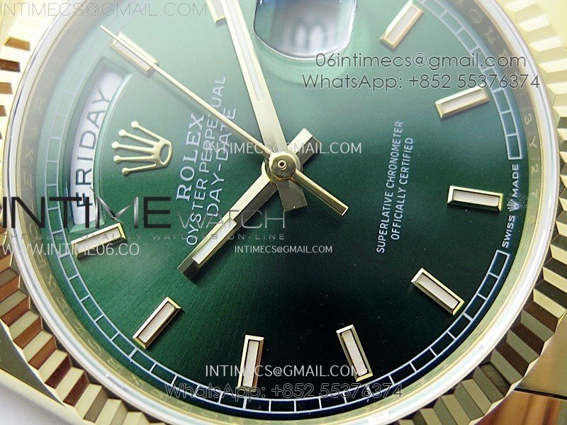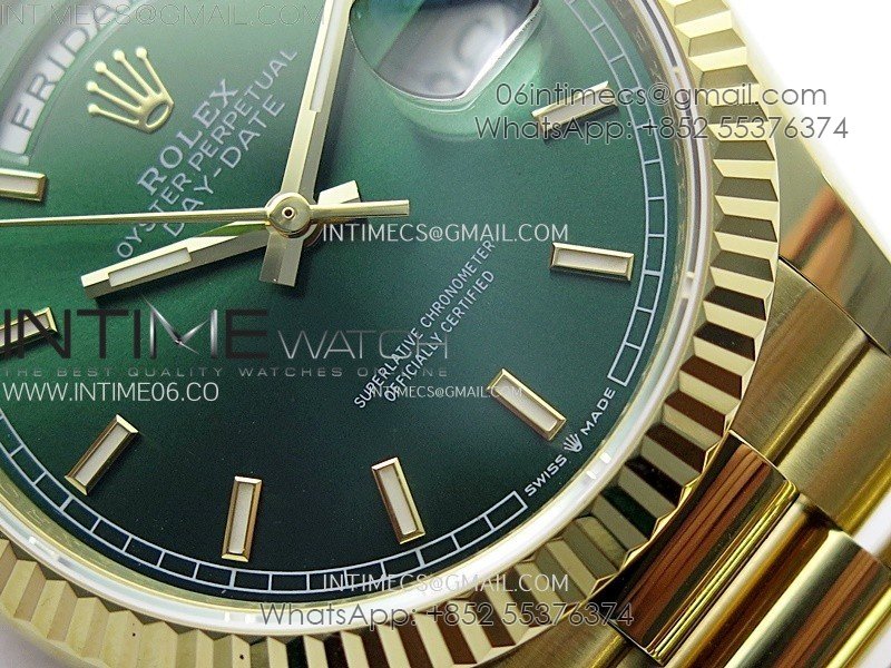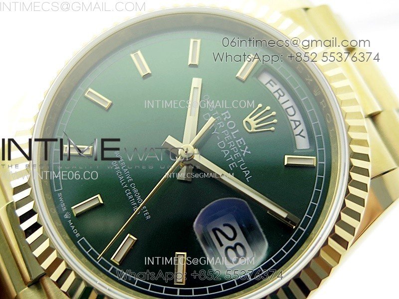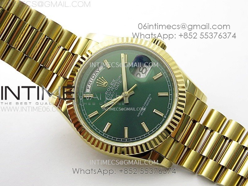 Day Date 36mm Gain Weight YG/tungsten APSF 1:1 Best Edition Green Dial Sticks Markers on SS President Bracelet A3255