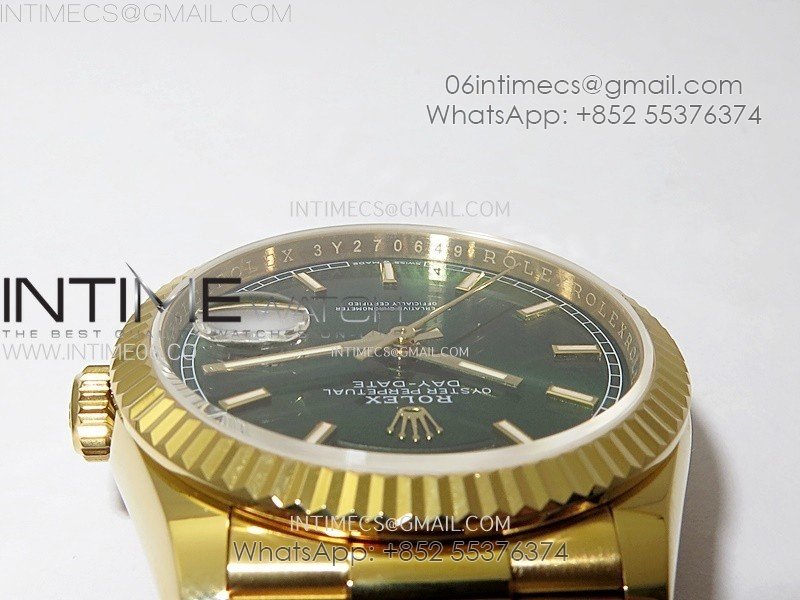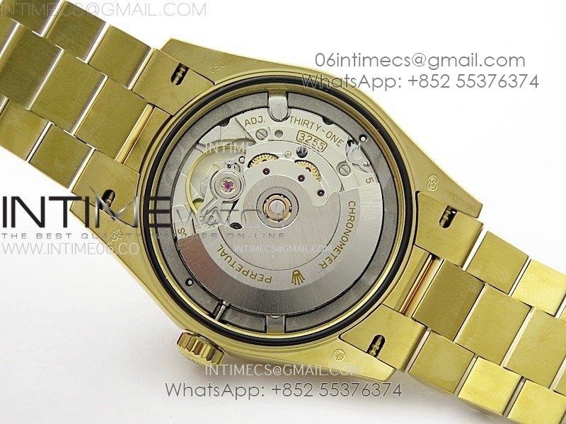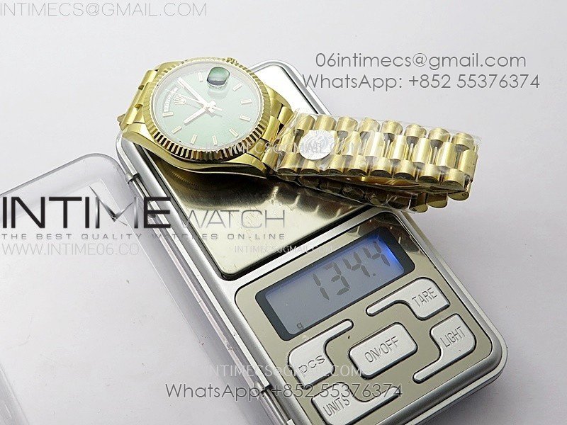 Case 18K yellow gold plated solid 904L stainless steel + tungsten case to gain more weight to match the genuine watch weight (almost 135 gram)