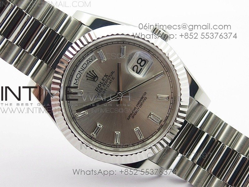 Day-Date 40 SS BP 1:1 Best 228239 Gray Diamond Sticks Dial on SS Bracelet