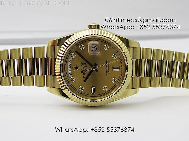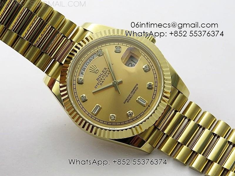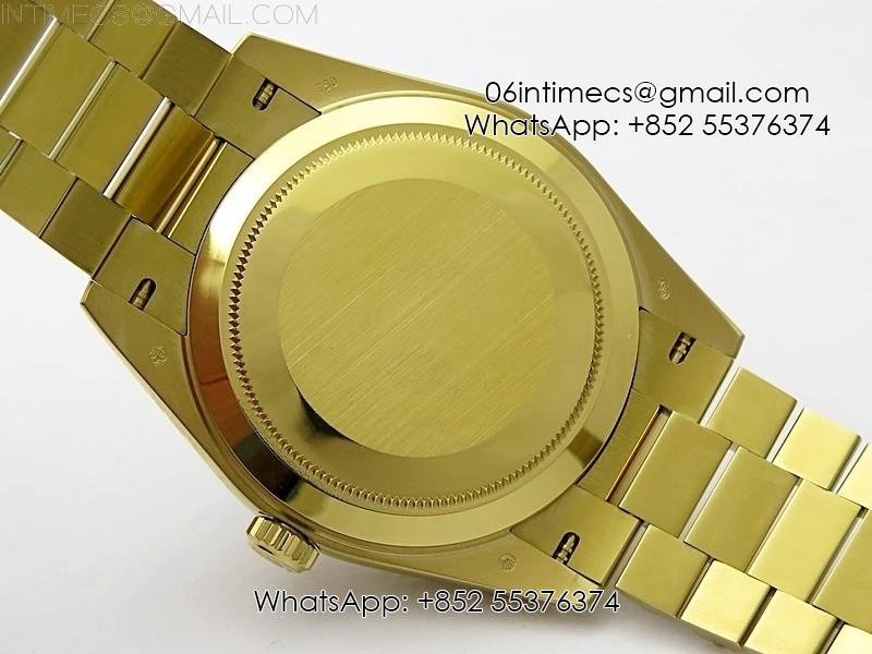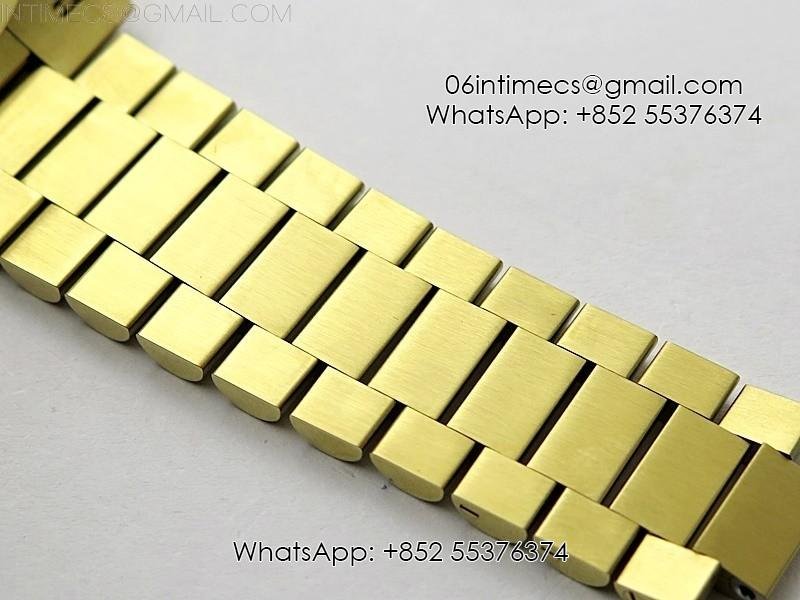 Case 18K yellow gold plated solid 904L stainless steel + tungsten case to gain more weight to match the genuine watch weight (over 150 gram)