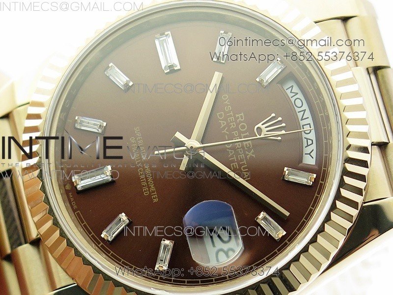 Day-Date 40mm 228239 BP New Dial Version 904 RG Brown T Crystal Markers Dial on RG President Bracelet A2836