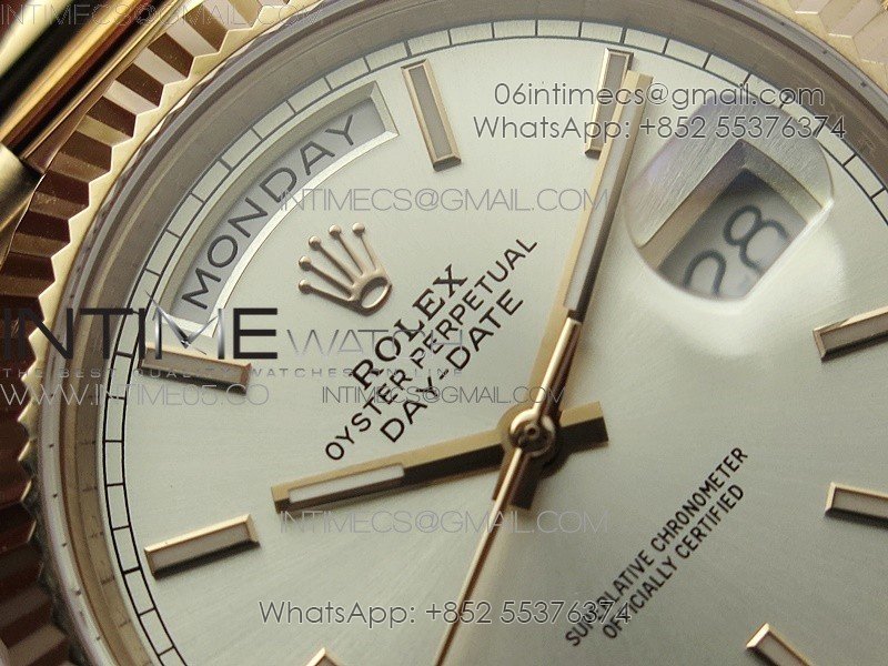Day-Date 40mm 228239 BP New Dial Version 904 RG Silver Stick Markers Dial on RG President Bracelet A2836