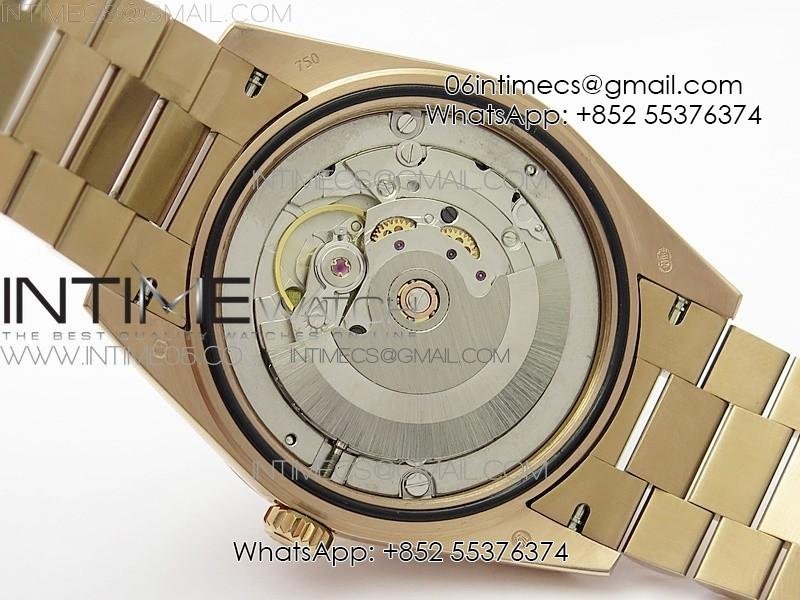 Case 18K Rose Gold Plated Solid 904L stainless steel, screw-in back and crown, deep and double line engraved rehaut, brighter and more accurate engravings, random serial number engraved at 6:00 of the rehaut. Different random serials
