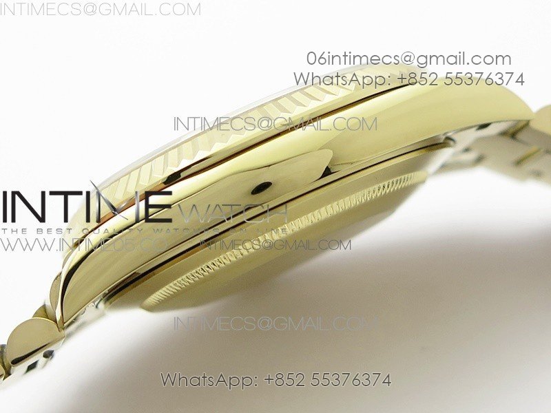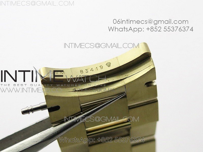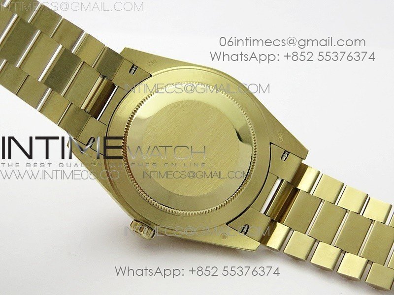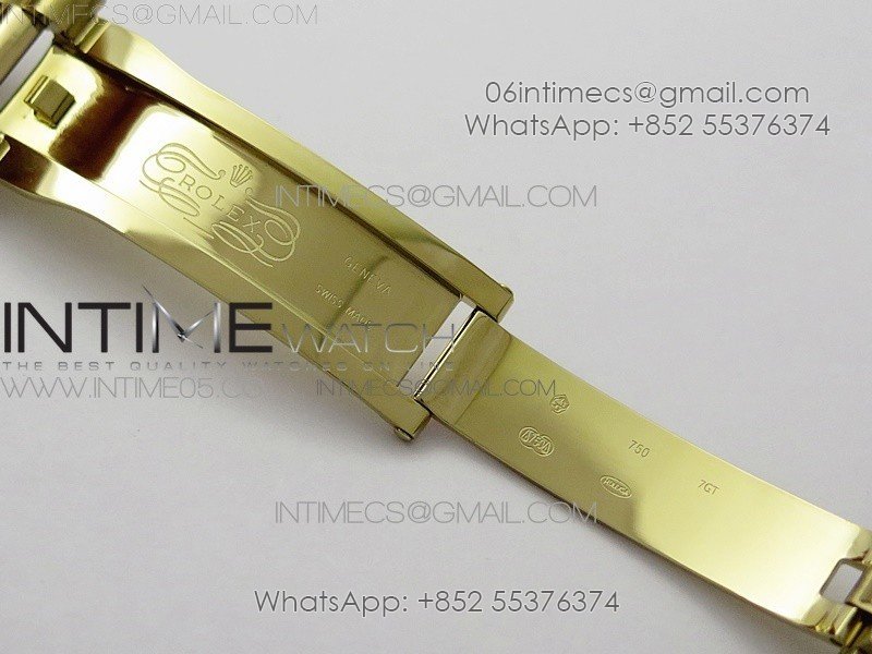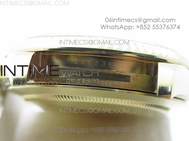 Case 18K Yellow Gold Plated Solid 904L stainless steel, screw-in back and crown, deep and double line engraved rehaut, brighter and more accurate engravings, random serial number engraved at 6:00 of the rehaut. Different random serials