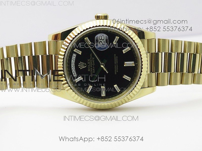 Day-Date 40mm 228239 BP New Dial Version 904 YG Black T Crystal Markers Dial on YG President Bracelet A2836