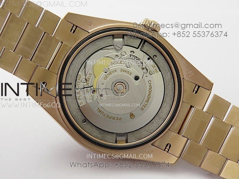 Case 18K rose gold plated stainless steel + tungsten case to gain more weight to match the genuine watch weight (over 150 gram)
