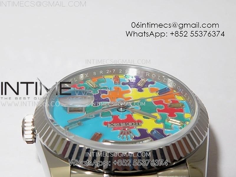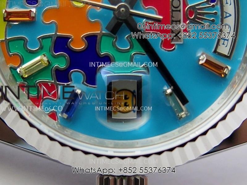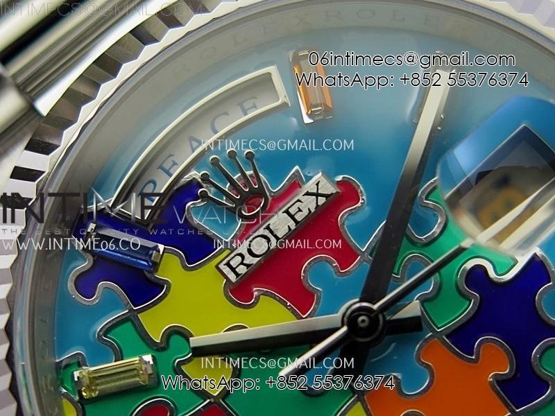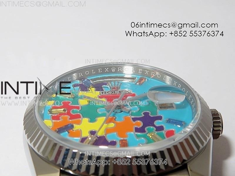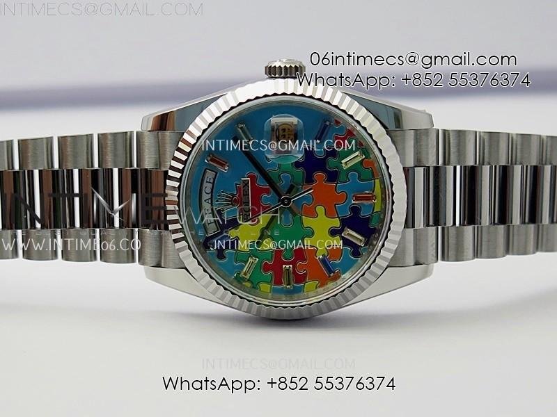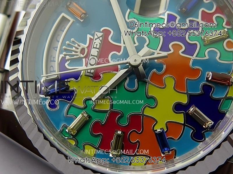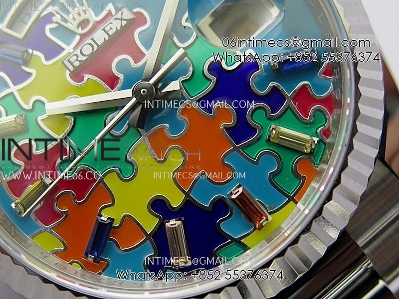 Daydate 128239 36mm Colour Jigsaw Puzzle SS QHF Best Edition Turquoise Blue Dial on SS President Bracelet A2834