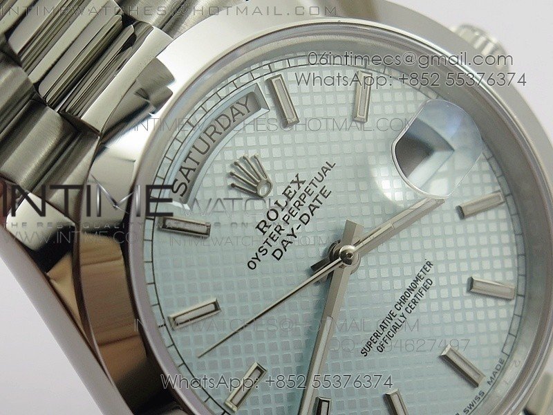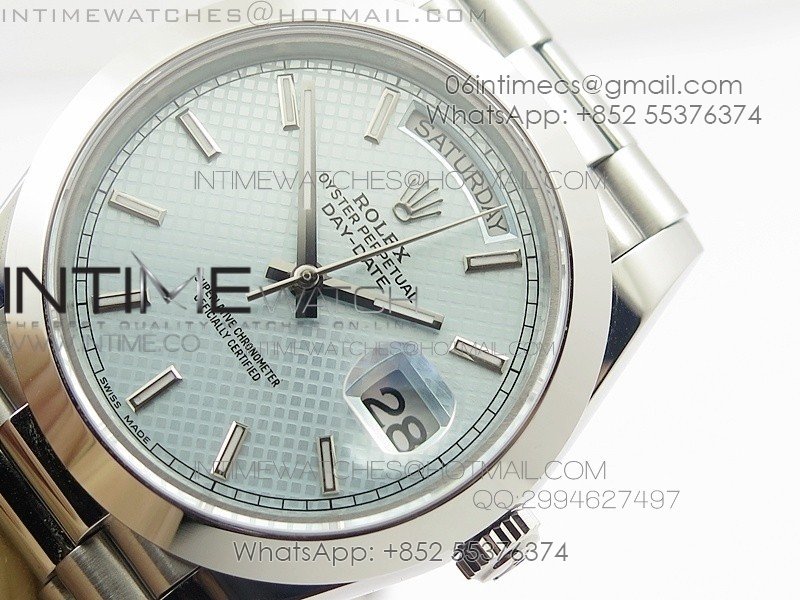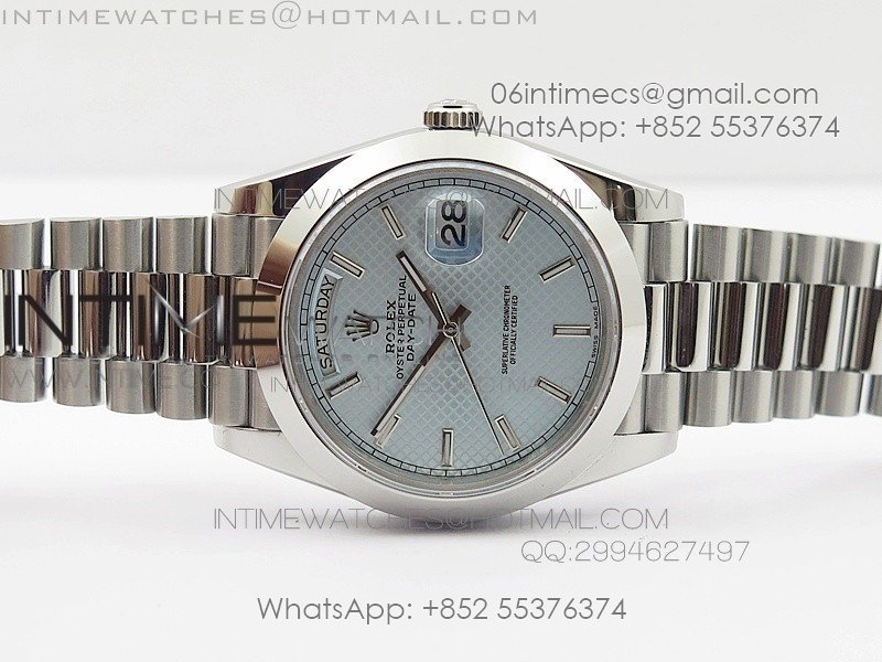 DayDate 40mm BP Best 228206SS Ice Blue Stick Dial (Smooth Bezel) on SS Bracelet