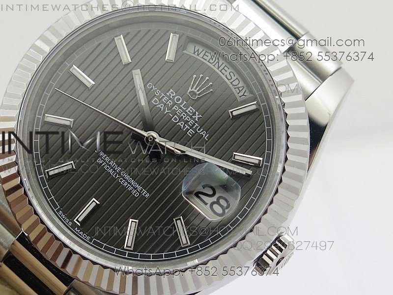 DayDate 40mm BP Best 228239SS Gray Stripe Stick Dial on SS Bracelet