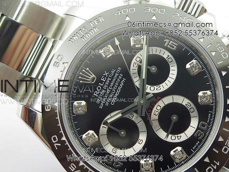 Daytona 116500LN APSF Black Dial Crystals Markers On SS BraceletSlim A7750