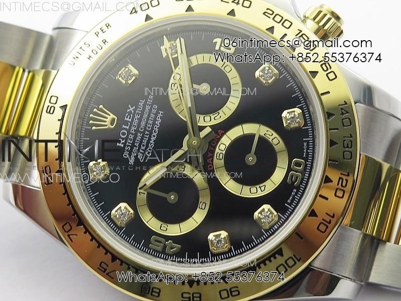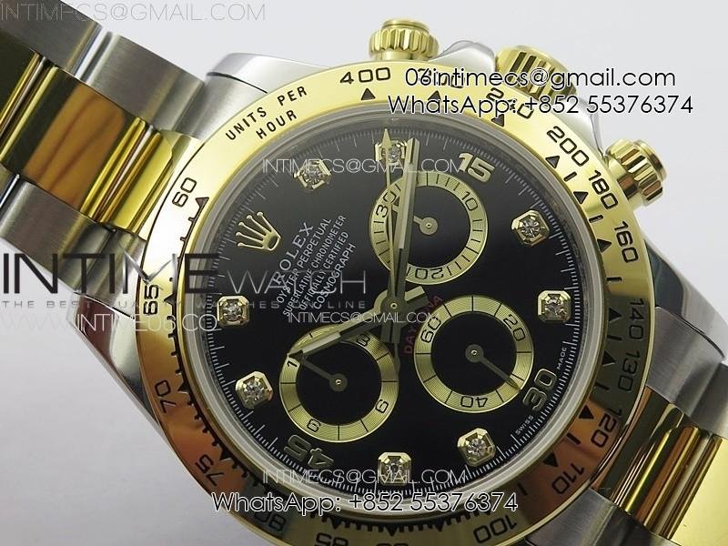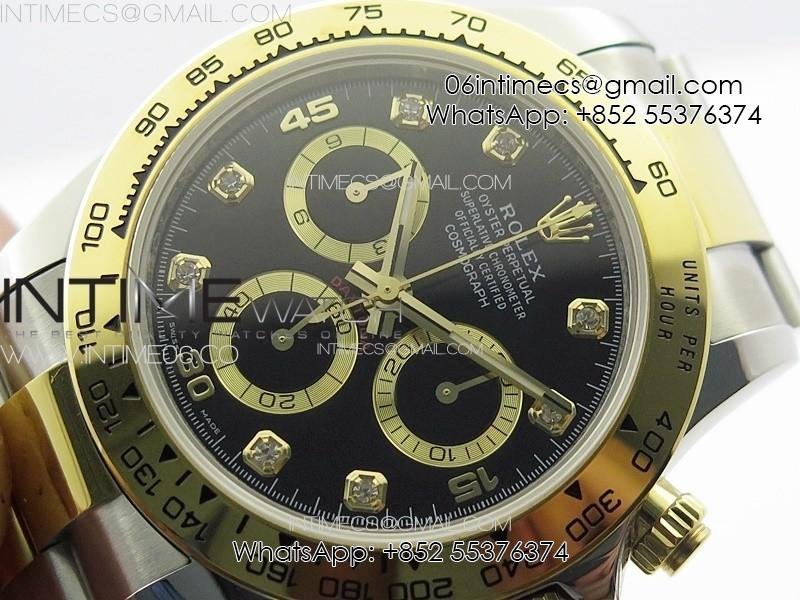 DAYTONA 116503 YG/SS APSF BLACK DIAL YG SUBDIAL CRYSTAL MARKERS ON YG/SS BRACELET SLIM A7750
